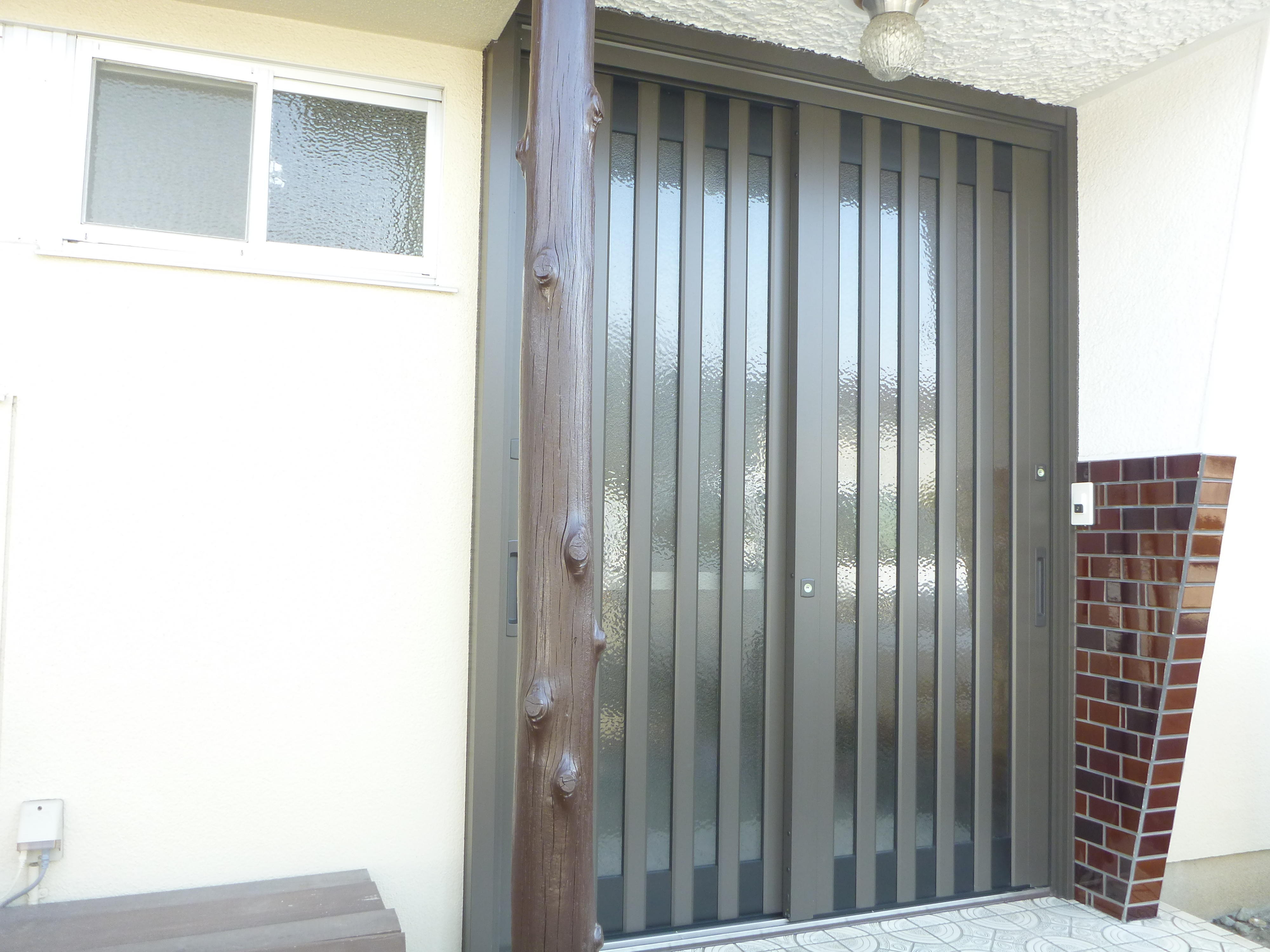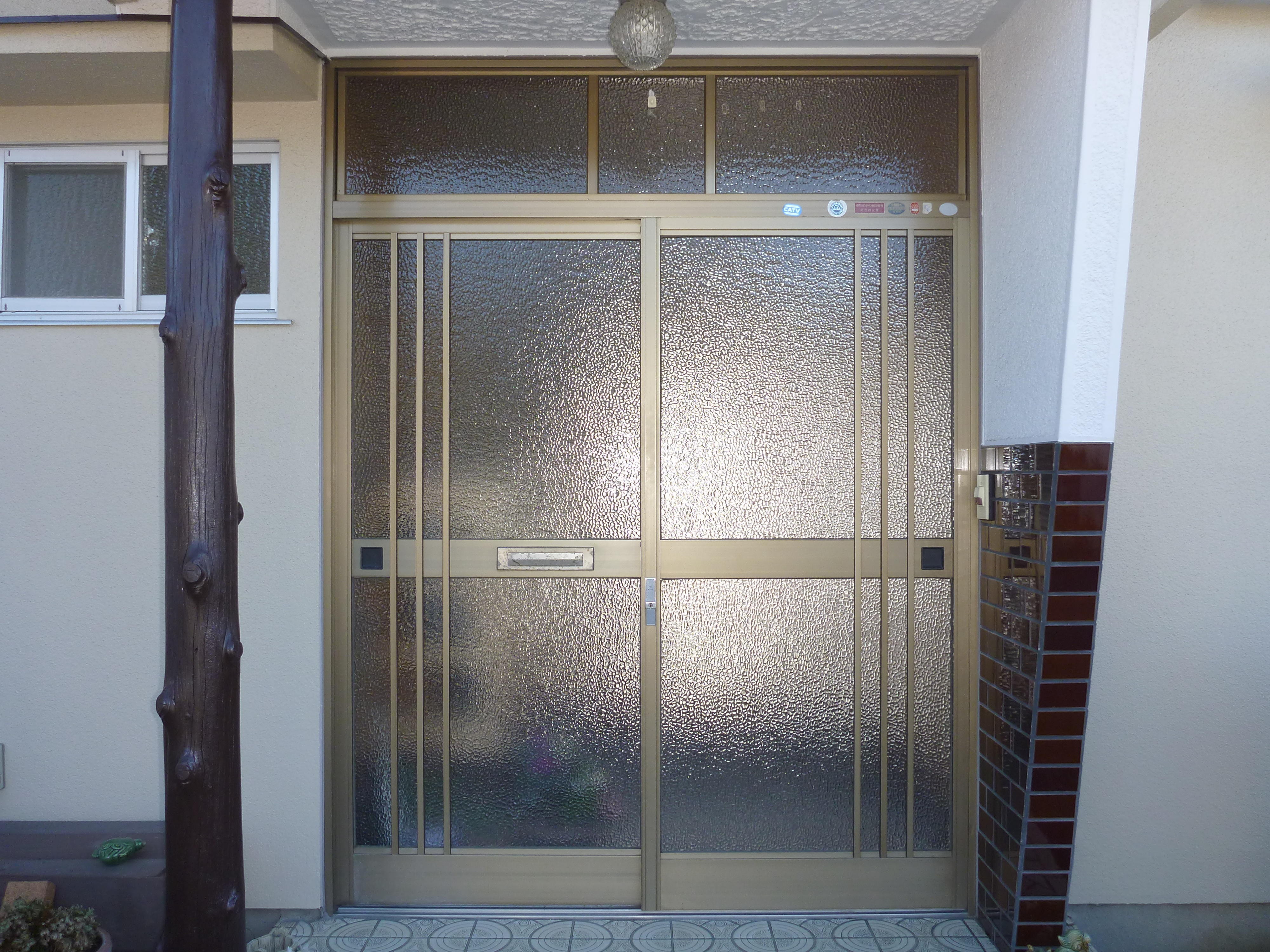 古くなってきたので新しい玄関ドアに交換したいとのご依頼をいただきました。今回の工事では、LIXILリシェントの引戸に交換しました。既存の玄関にはランマがついていたのですが、新しくつけた玄関ドアにはランマがついていないため、スッキリとダイナミックな印象の玄関ドアに仕上がりました。LIXILリシェントは、住まいのこだわりに合わせて選べる、豊富なバリエーションなので1日で美しく一新。
