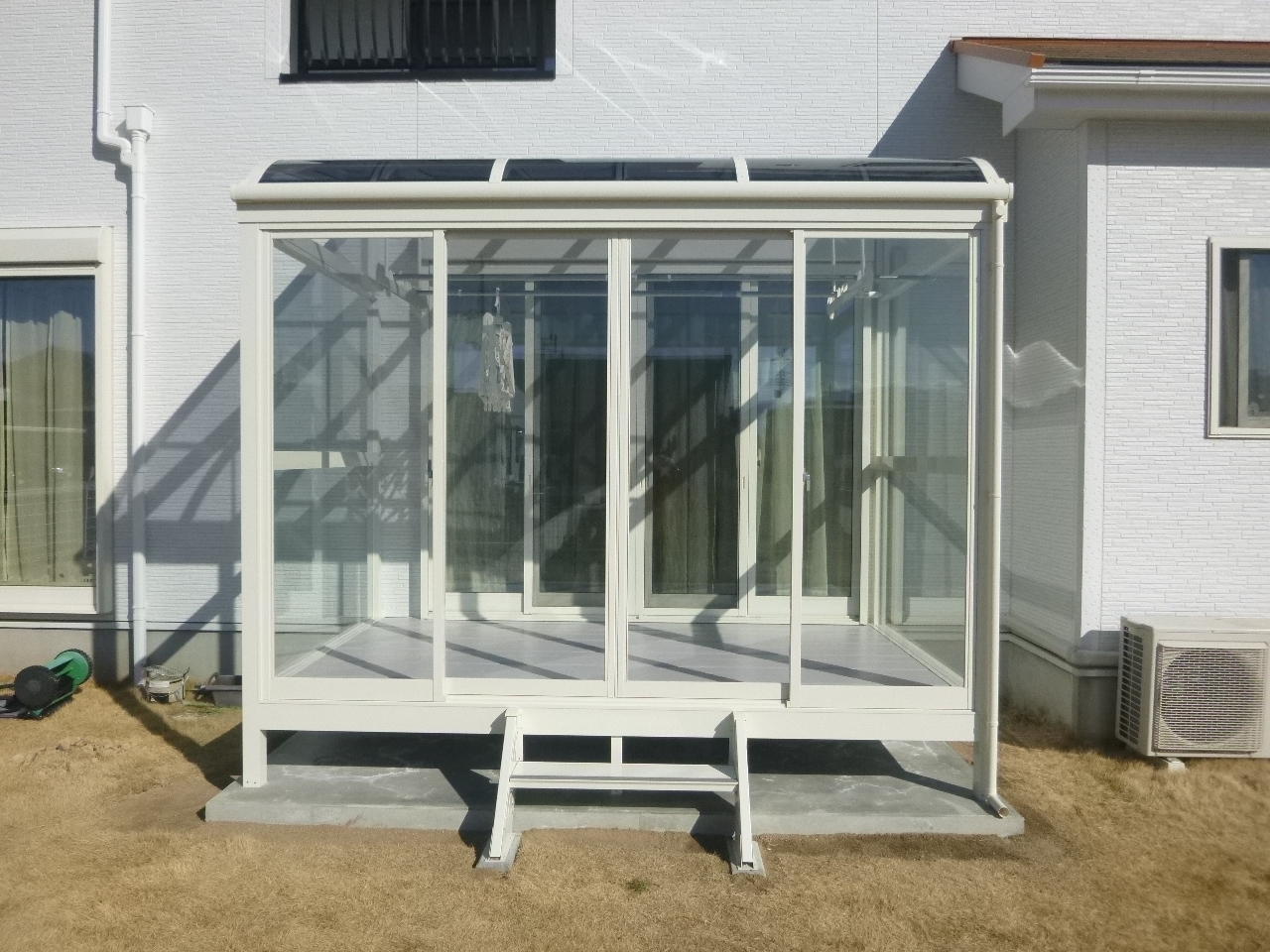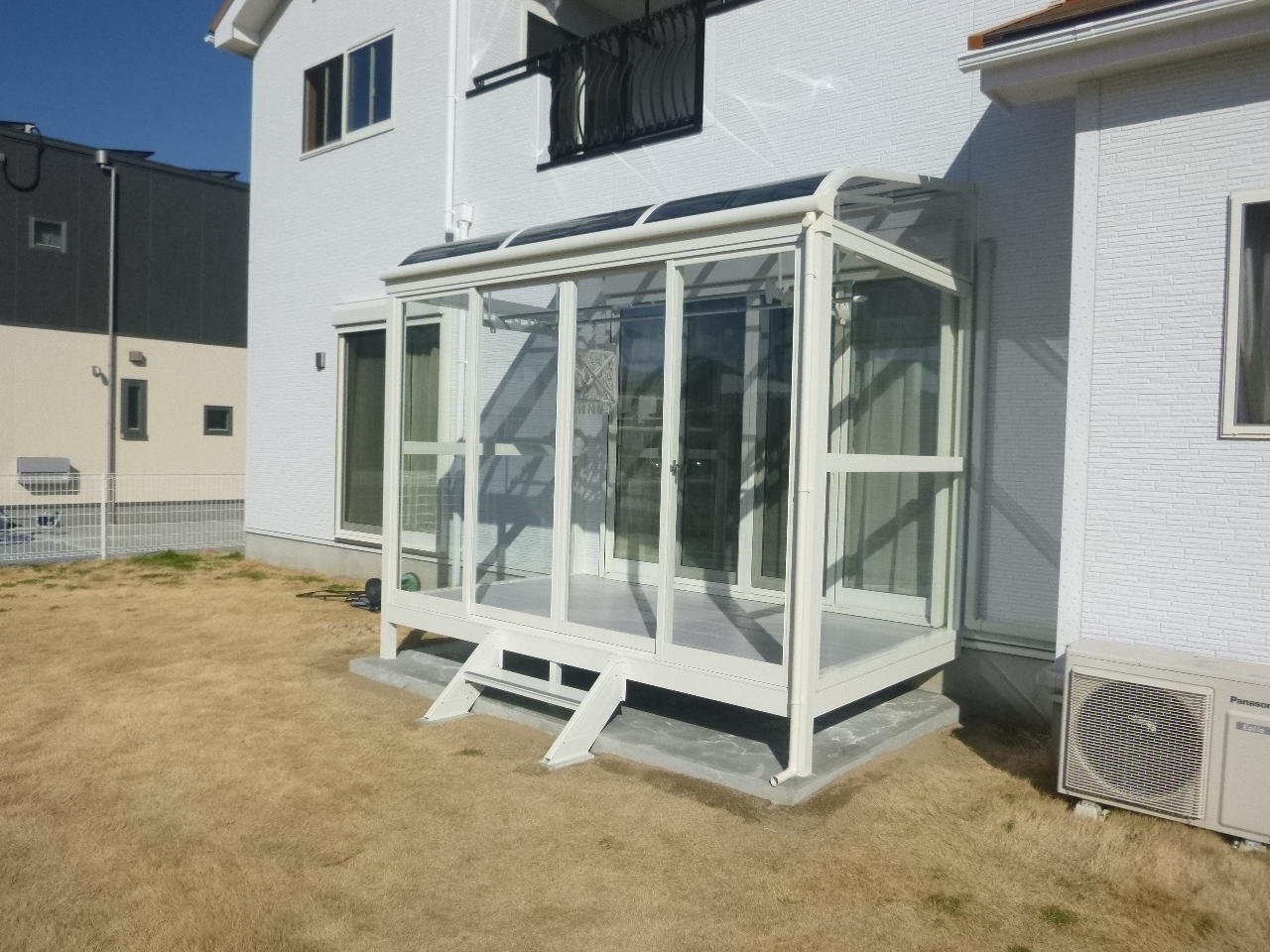南アルプス市のI様邸テラス囲い設置工事。テラス囲いを設置したい!との、ご依頼をいただきました。家との調和のとれたテラス囲いに仕上がりました。