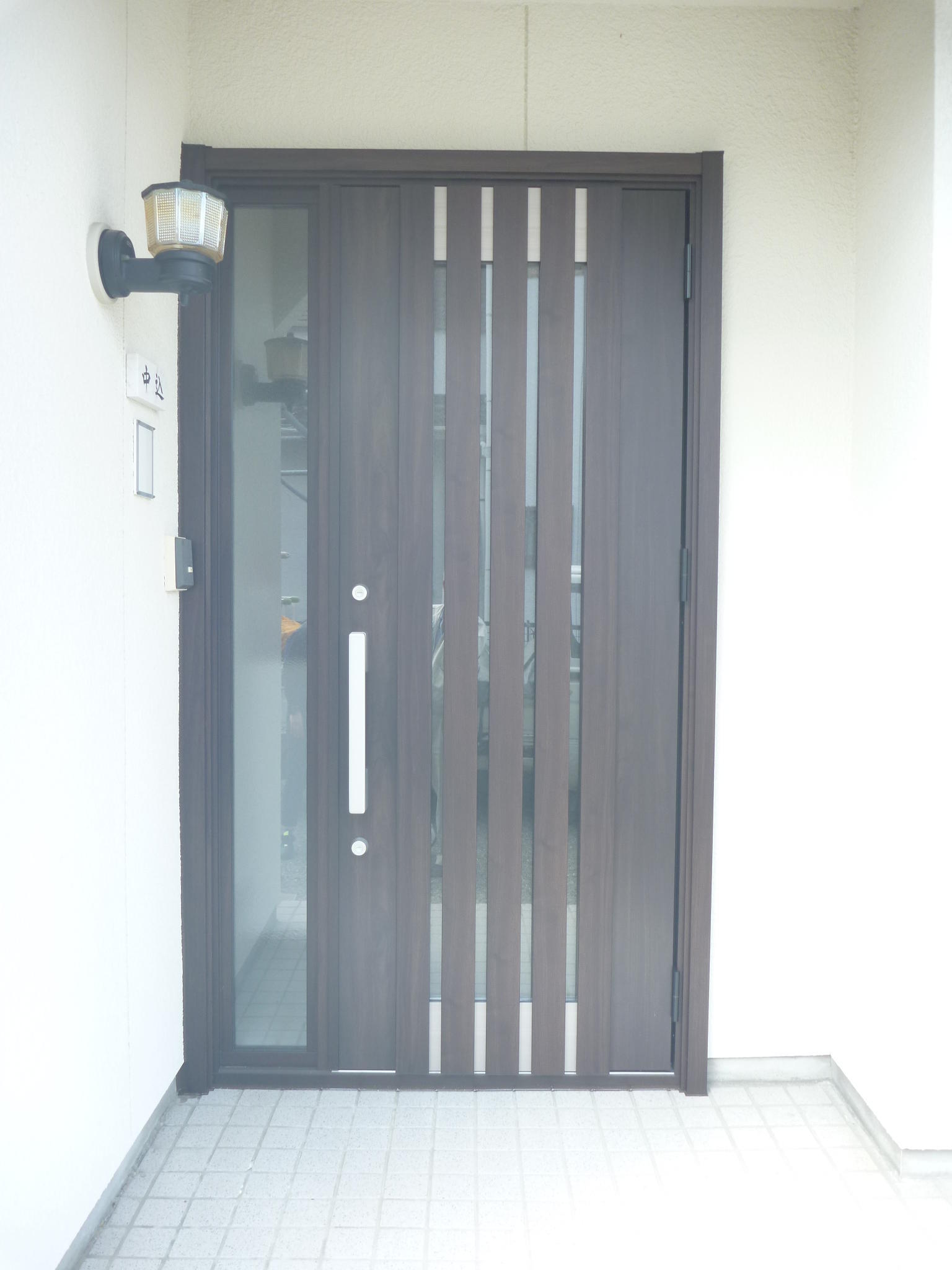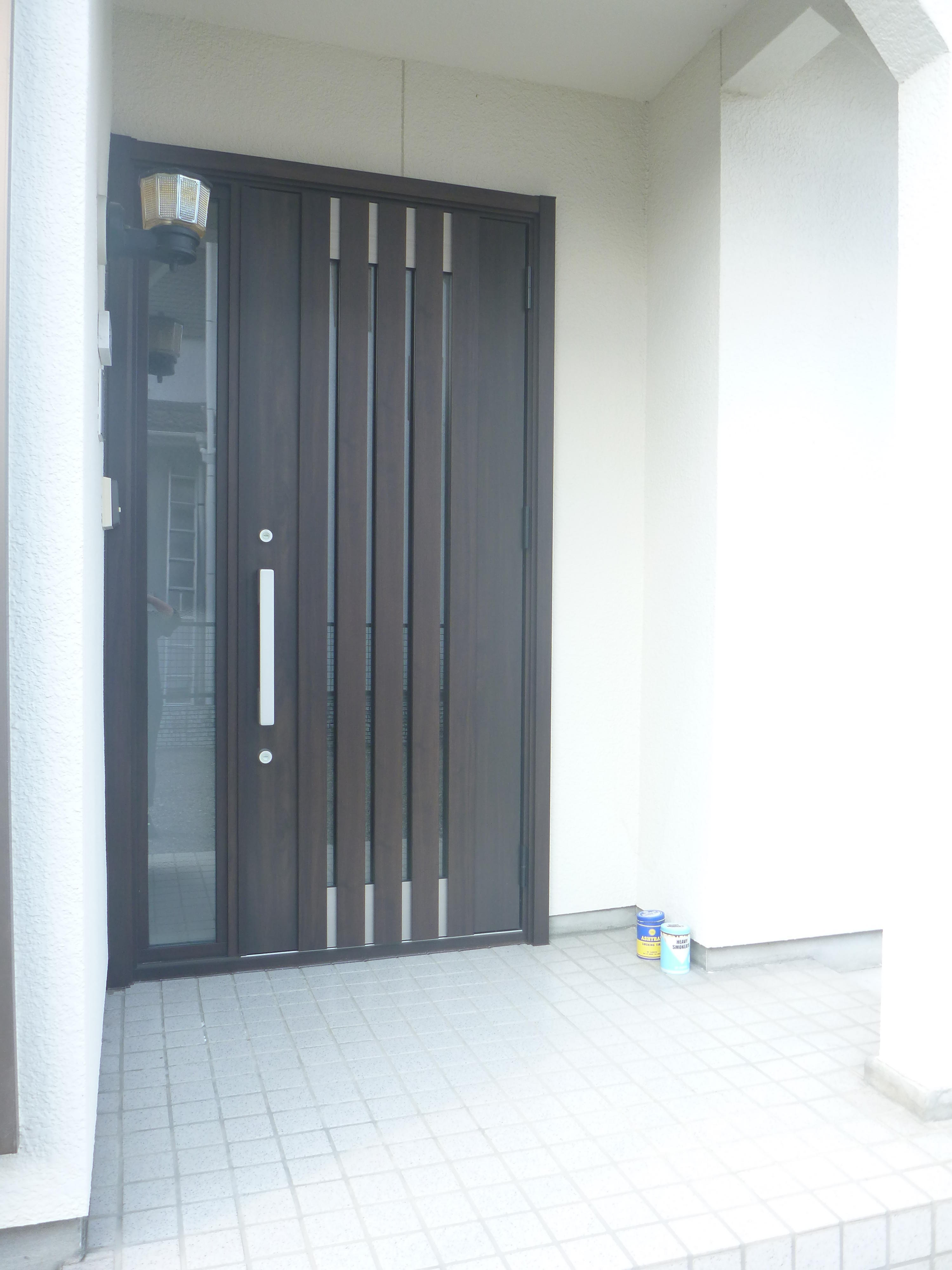 玄関ドアの本体が古くなってしまい、ストッパーも効かなくなってしまったということで、LIXILリシェントに交換させていただきました。かっこいいスタイリッシュなドアになりました。リシェントは、工事が1日!!!1日で素敵な玄関ドアに早変わりです。