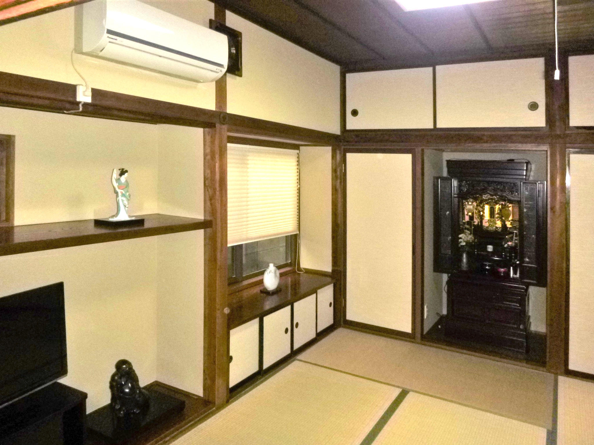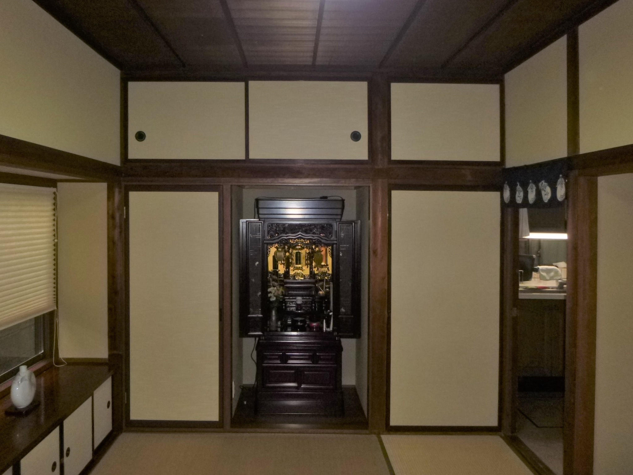 襖や障子、クロスを貼り替え、サッシをサーモスⅡに変更し、新たに快適な寝室に仕上がりました。仏壇置き場も作り、きれいに収納されました。