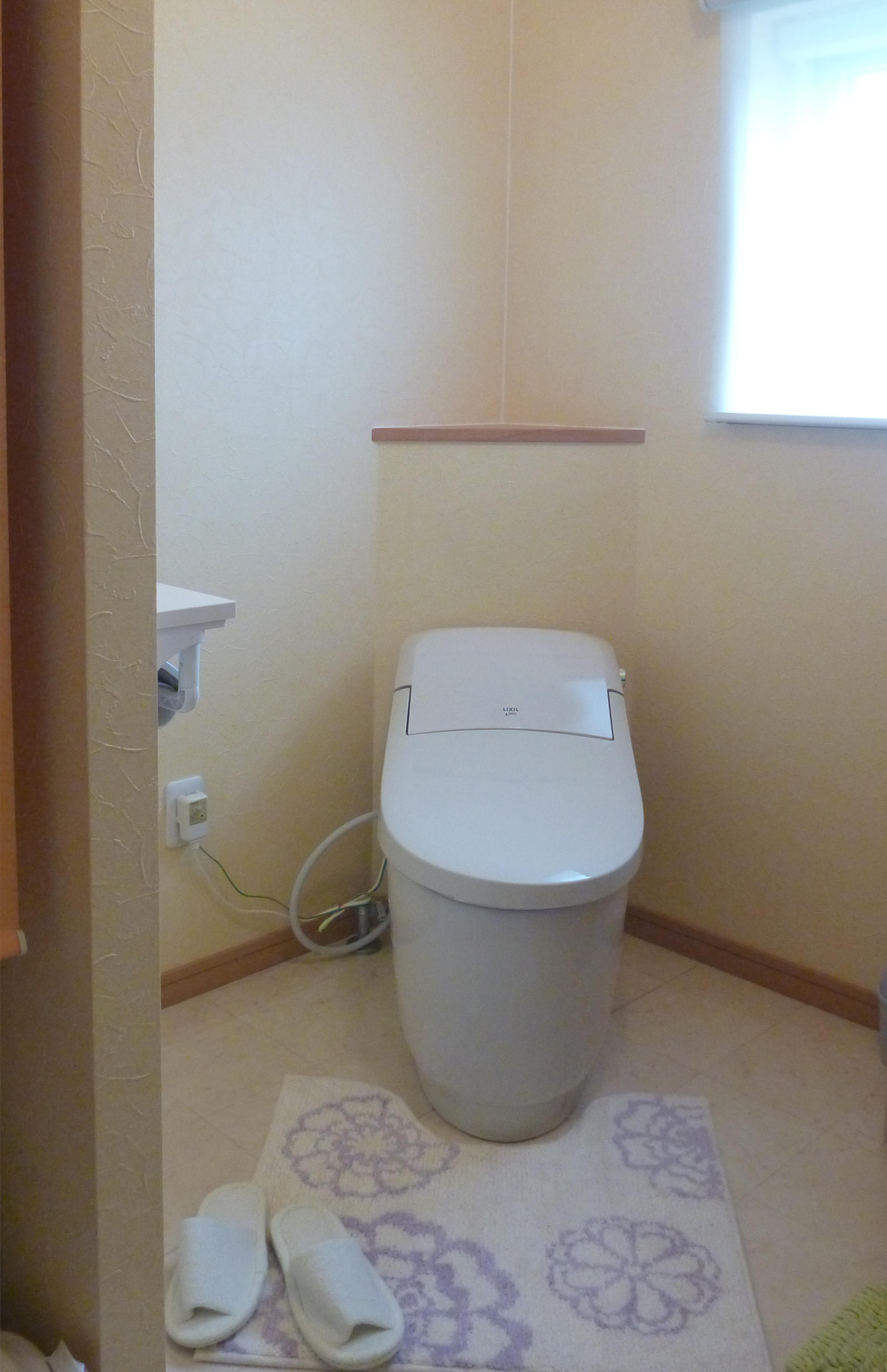 南アルプス市M様邸は、トイレがコーナーについており少し狭いと感じていました。向きを変え、トイレを一つの空間とわかるようにしたいとのご依頼を頂きました。