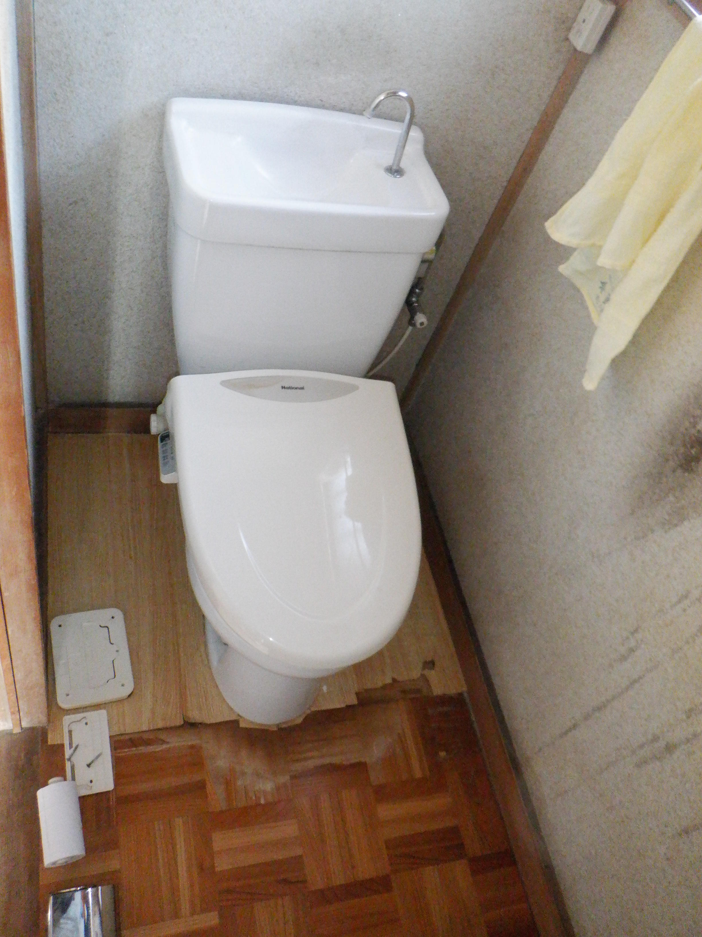 トイレはだいぶ昔のものだったので新しく節水トイレに交換しました。同時に、床が湿気でボコボコしていたり、きしんでいたりしていたので、根太かえら補強し直しました。床やクロスも貼り替え、新しく明るい空間に仕上がりました。