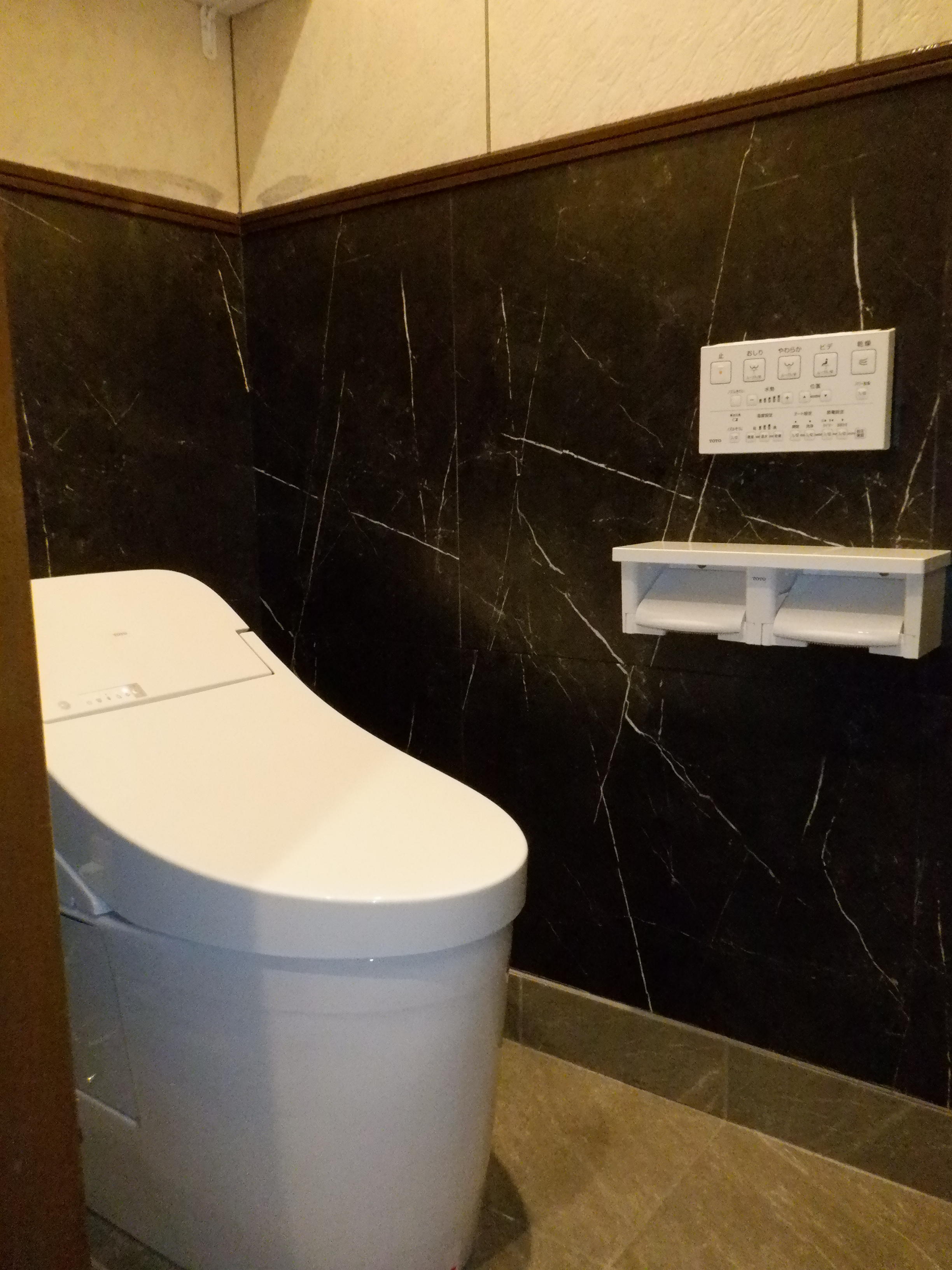 シックな雰囲気に仕上がりとても満足しています。補助金もありお得にリフォーム出来て良かったです。お客様もトイレが利用しやすくなり喜んでいます。ありがとうございました。