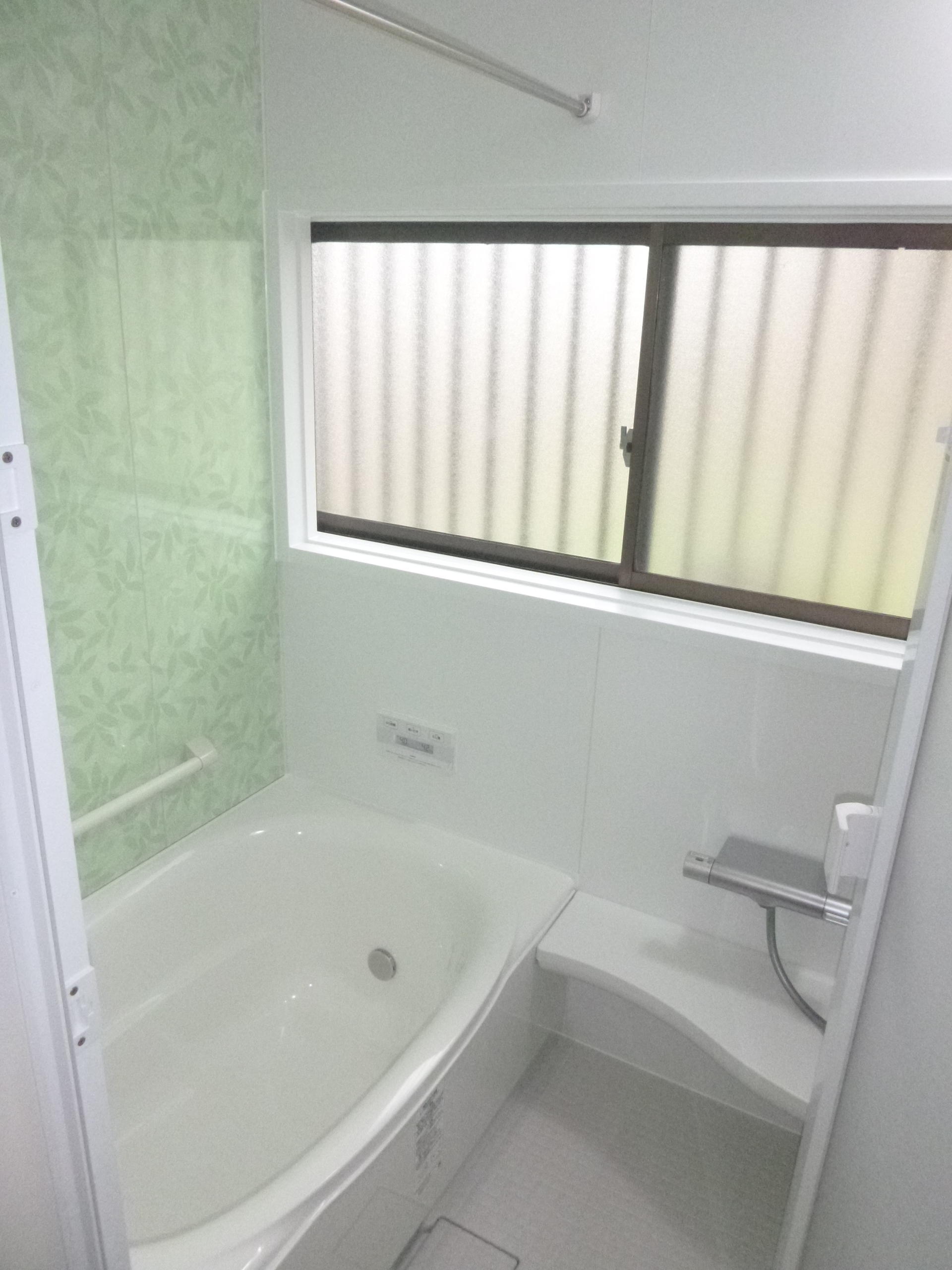 排水配管のずれから、水漏れを心配していました。そして、そろそろ浴室のリフォームを考えており、ご依頼を頂きました。 以前までの浴室に比べ、断熱効果やお掃除の面で機能向上しました。緑色のパネルは、清潔感があり開放的な空間に仕上げてくれました。