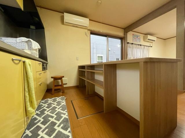 LDKをワンフロアにしたいという事でご依頼を頂きました。リビングとダイニングキッチンの間にある壁を撤去し、一つの空間に仕上げました。残念ながら柱は撤去することが出来なかったのですが、木目調のクロスを貼ることよっていい感じのアクセントとなりました。色々な使い道が出来るよう、造作カウンターも設置しました。