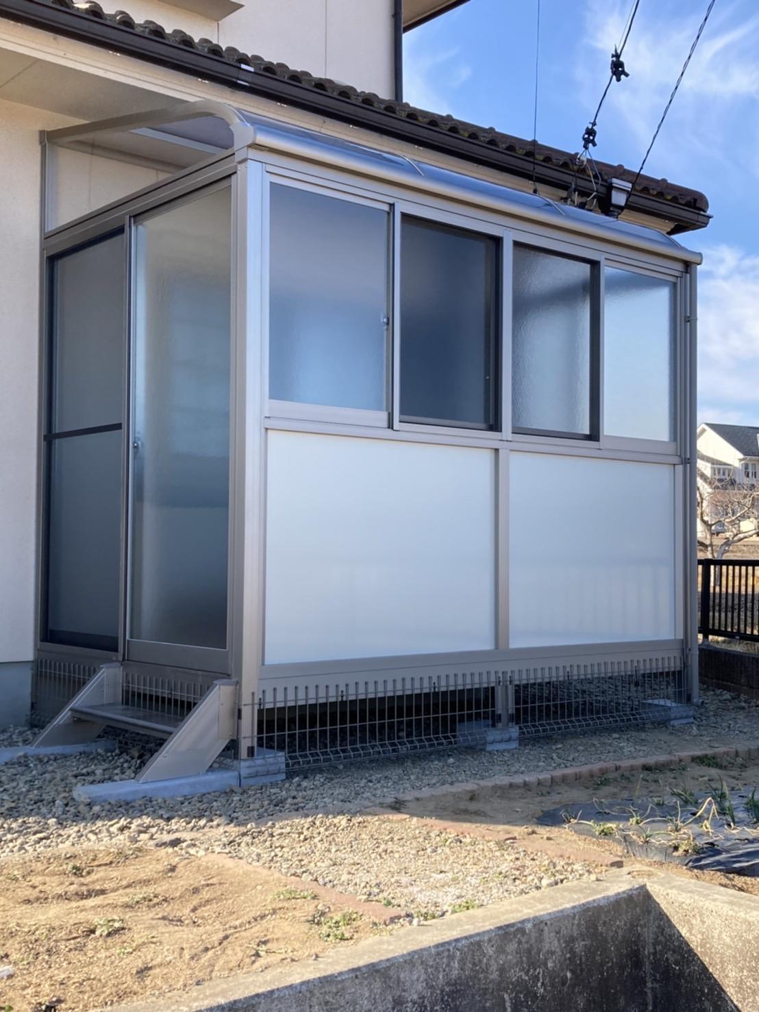 子犬を部屋の中で育てたいというご希望でテラス囲いを設置いたしました。