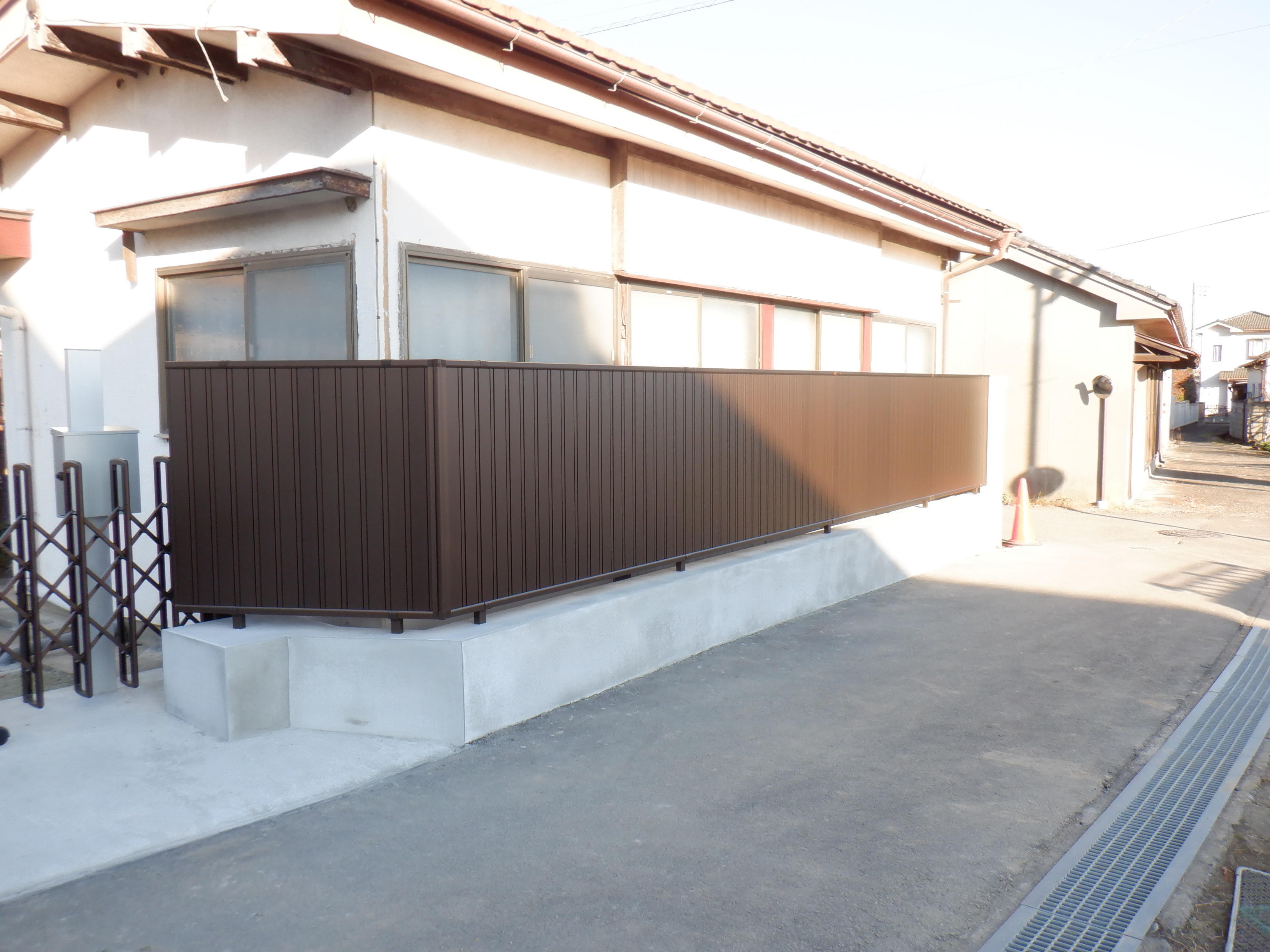 南アルプス市 S様邸。 庭の木の撤去と一緒に塀も交換したいとのことでした。 外観も一変して目隠しにもなるフェンスにしました。