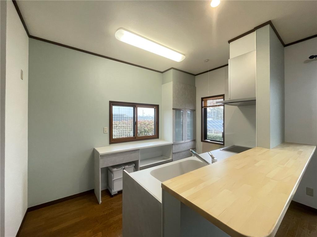 キッチン前に垂れ壁があり、手元が暗いキッチンにお悩みでしたので、垂れ壁を無くし一体的なダイニング空間となりました。