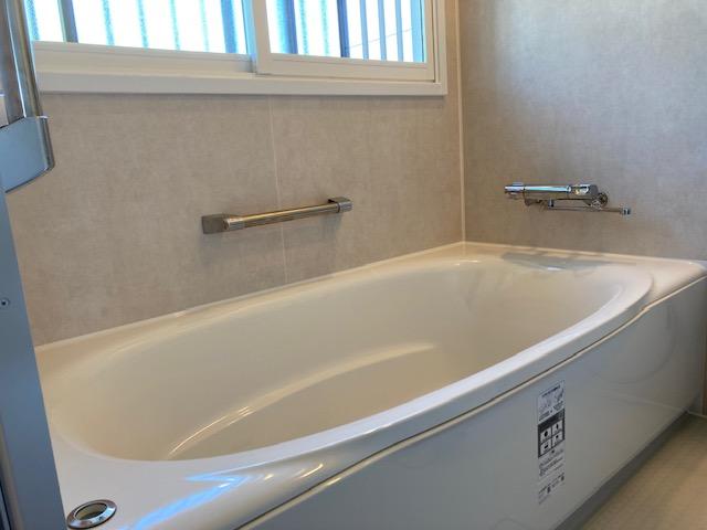 山梨県南アルプス市M様邸の浴室リフォームが完成しました!浴槽の向きを変えたことで、バスタイムがリフレッシュしました!タイルで冷たく滑りやすかった床もリクシルリデアのキレイサーモフロアで冷たさが感じにくくなりました。