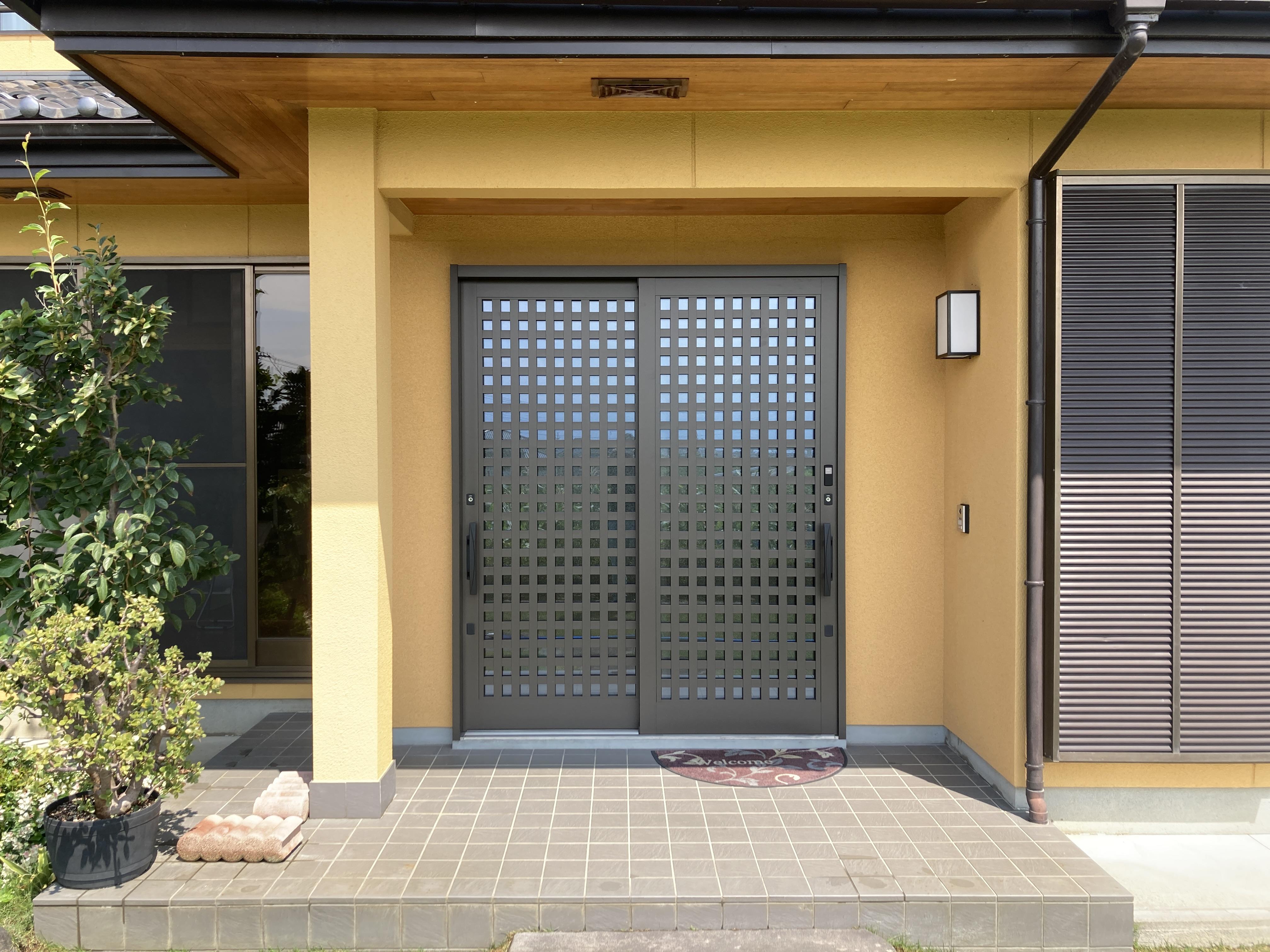 4枚建ての引戸から2枚建てへの変更のため、お客さまがイメージが大きく変わることに心配しておりましたが違和感なく仕上がりました。 家の顔である玄関リフォームは見た目だけでなく性能的にも効果があります。