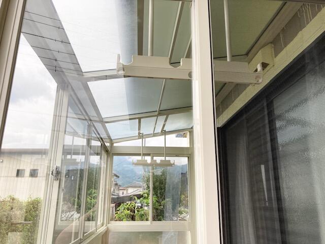 山梨県南アルプス市I様邸のテラス囲い『サニージュ』が完成しました!今まではウッドデッキでしたので雨風が防げなかったのですが、囲いがあることで心配がなくなりました。