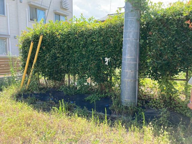 10年前に当社でリノベーション工事をして頂いたTさんですが、高齢になり庭木のお手入れが困難になってきたとのご相談があり、レッドロビンの垣根を伐採してフェンスを設置することになりました。