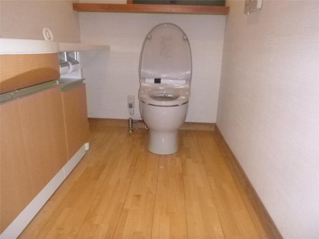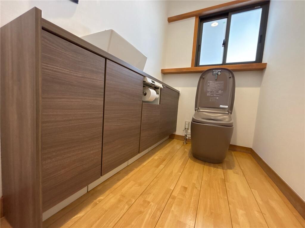 山梨県富士川町O様邸のトイレリフォームが完成しました。トイレの故障によるリフォームでしたが、収納量が多いキャパシアとサティスGの組合わせで上質なレストルームとなりました。