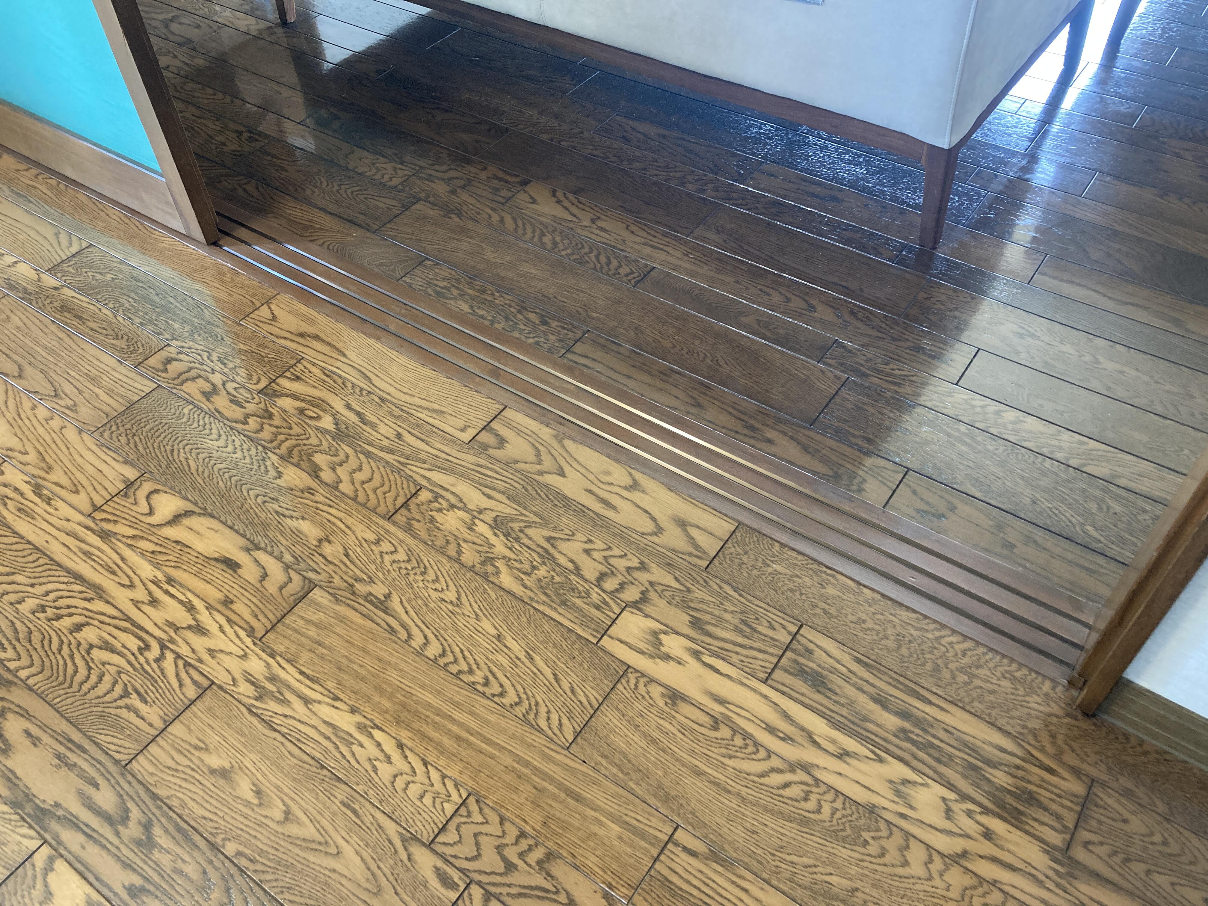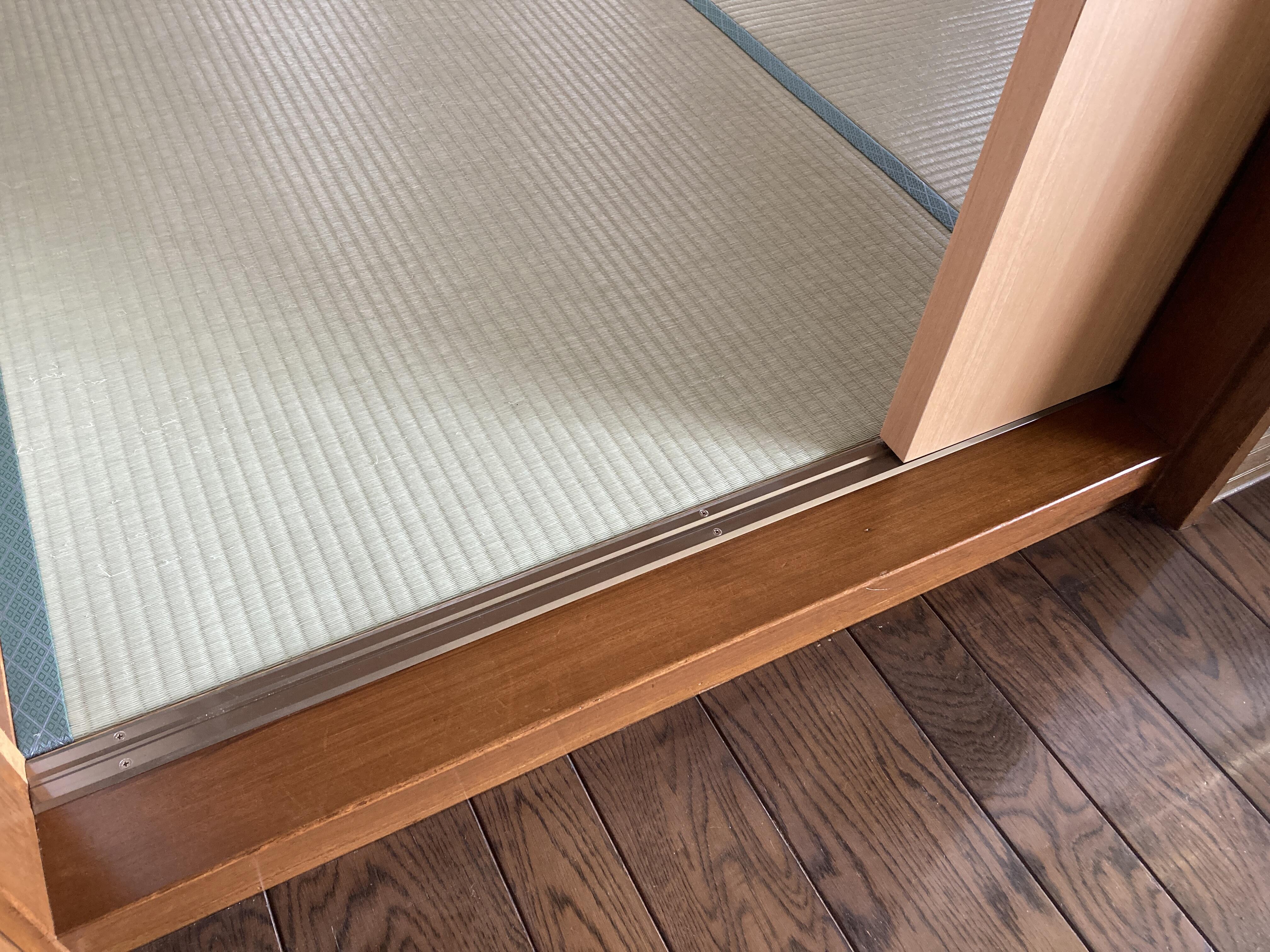 ちいさなお孫さんが来られた際に危なくないように、リビング・ダイニングの間仕切りレールの段差をなくせないかとのことでした。