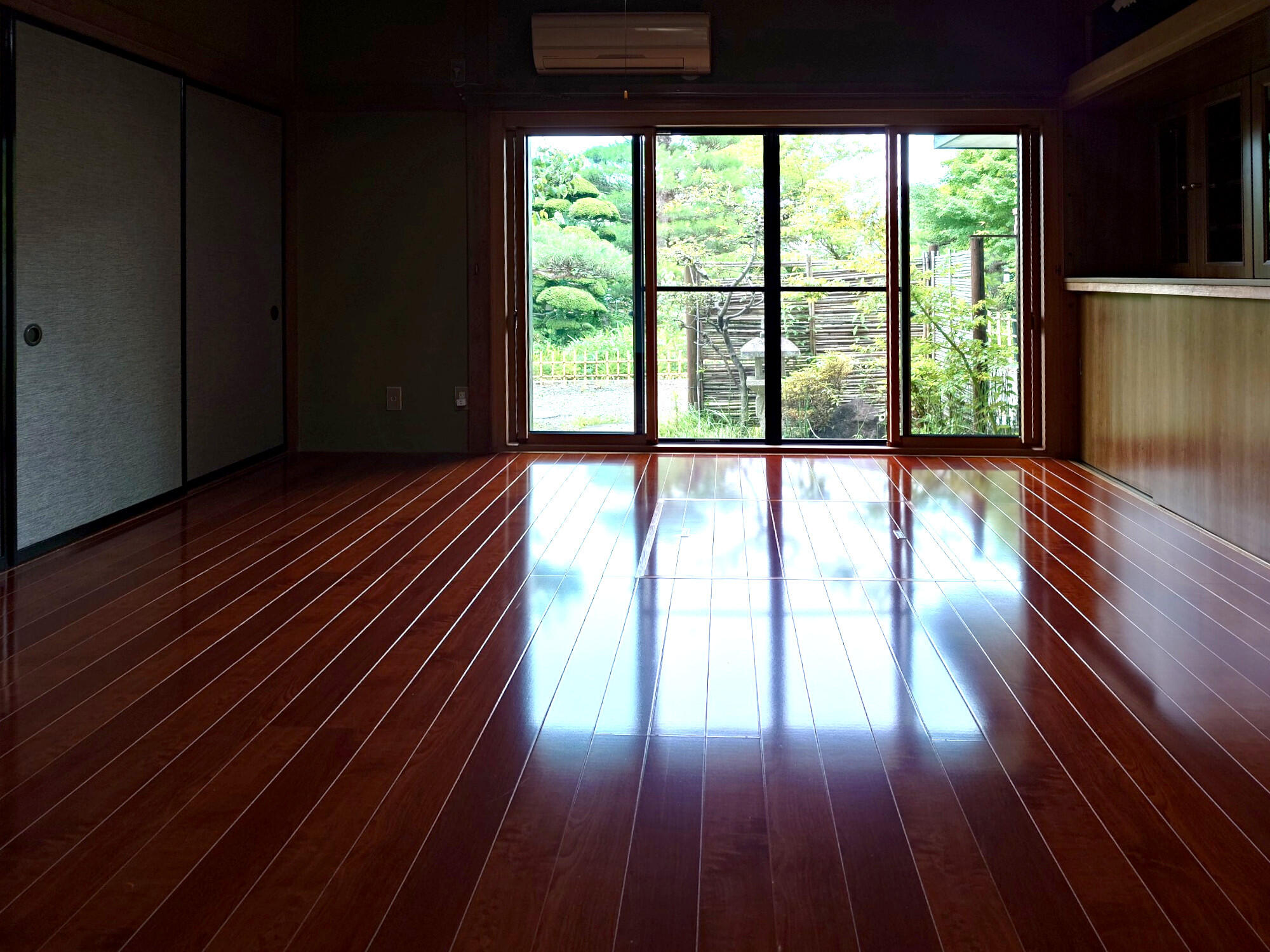 山梨県 南アルプス市N様邸の和室から洋室への改修工事。畳を撤去しフローリングの色は「アンバーチェリー」で模様替え。掃き出しサッシにインプラス(内窓)の設置し断熱性向上!。押入れの空間は施主様ご希望の造作家具を設え。その隣にはお仏壇を配置し整いました。同時に、洗面化粧台2ヵ所の交換工事も行いました。