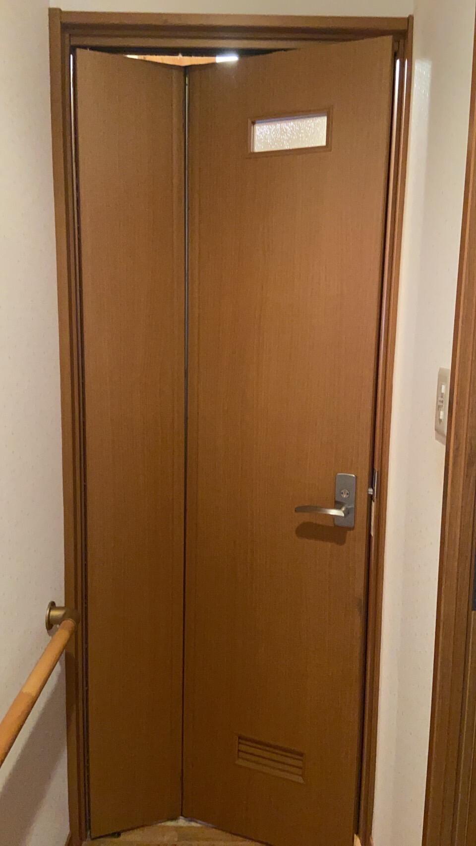 山梨県南アルプス市K様邸のトイレドアリフォームが完成しました!既存は折れ戸仕様でしたが経年劣化でドアが閉まらなくなってしまい、オーダーメイドでドアを作成しました!