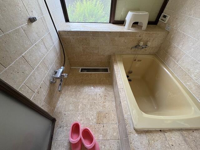 山梨県南アルプス市O様邸の浴室修繕工事が完成しました!全面タイルの浴室でひび割れや汚れが気になっていましたが、床の貼替と天井塗装・更に折れ戸の交換をしたことで、安全で掃除しやすい浴室となりました!
