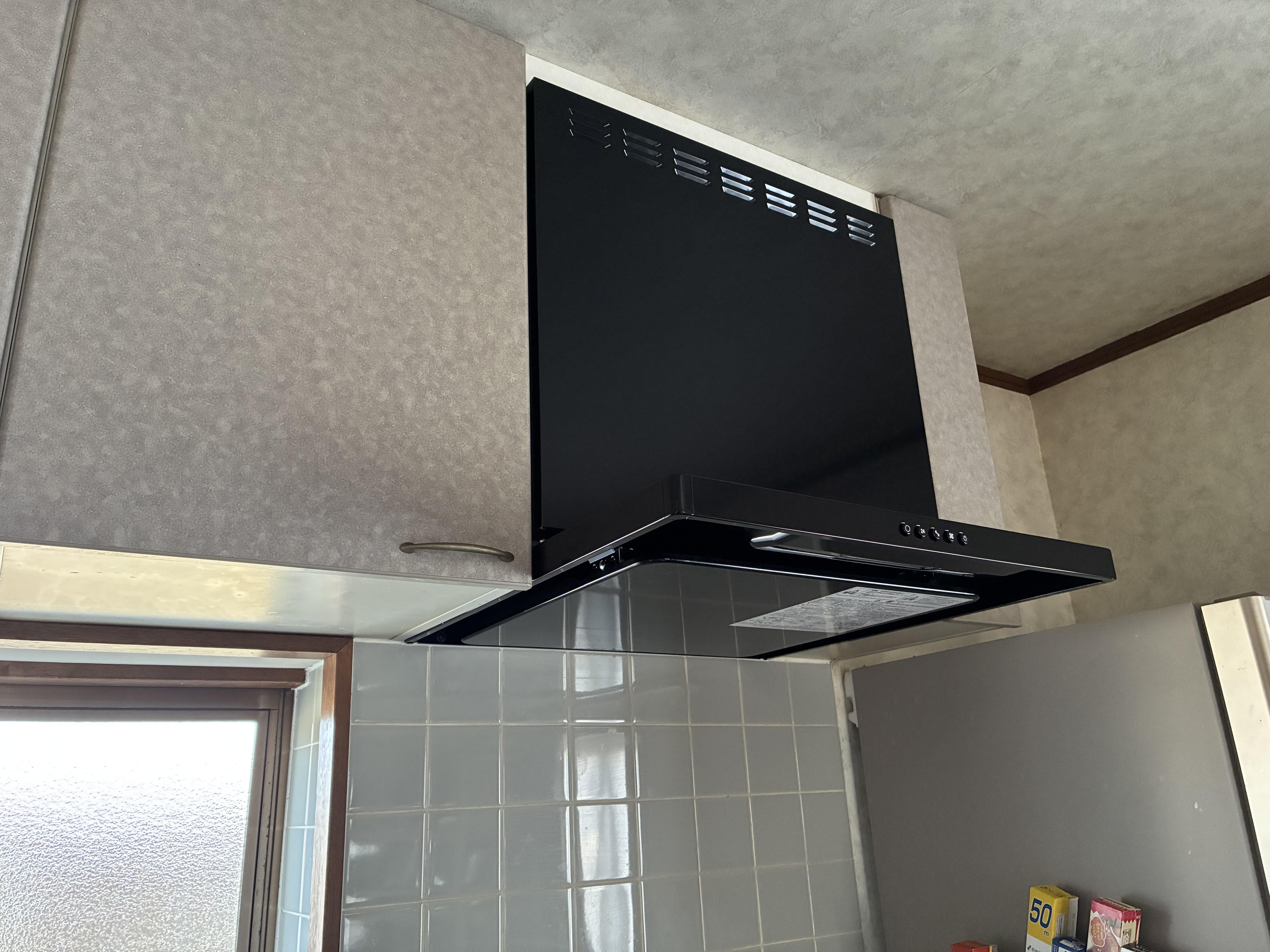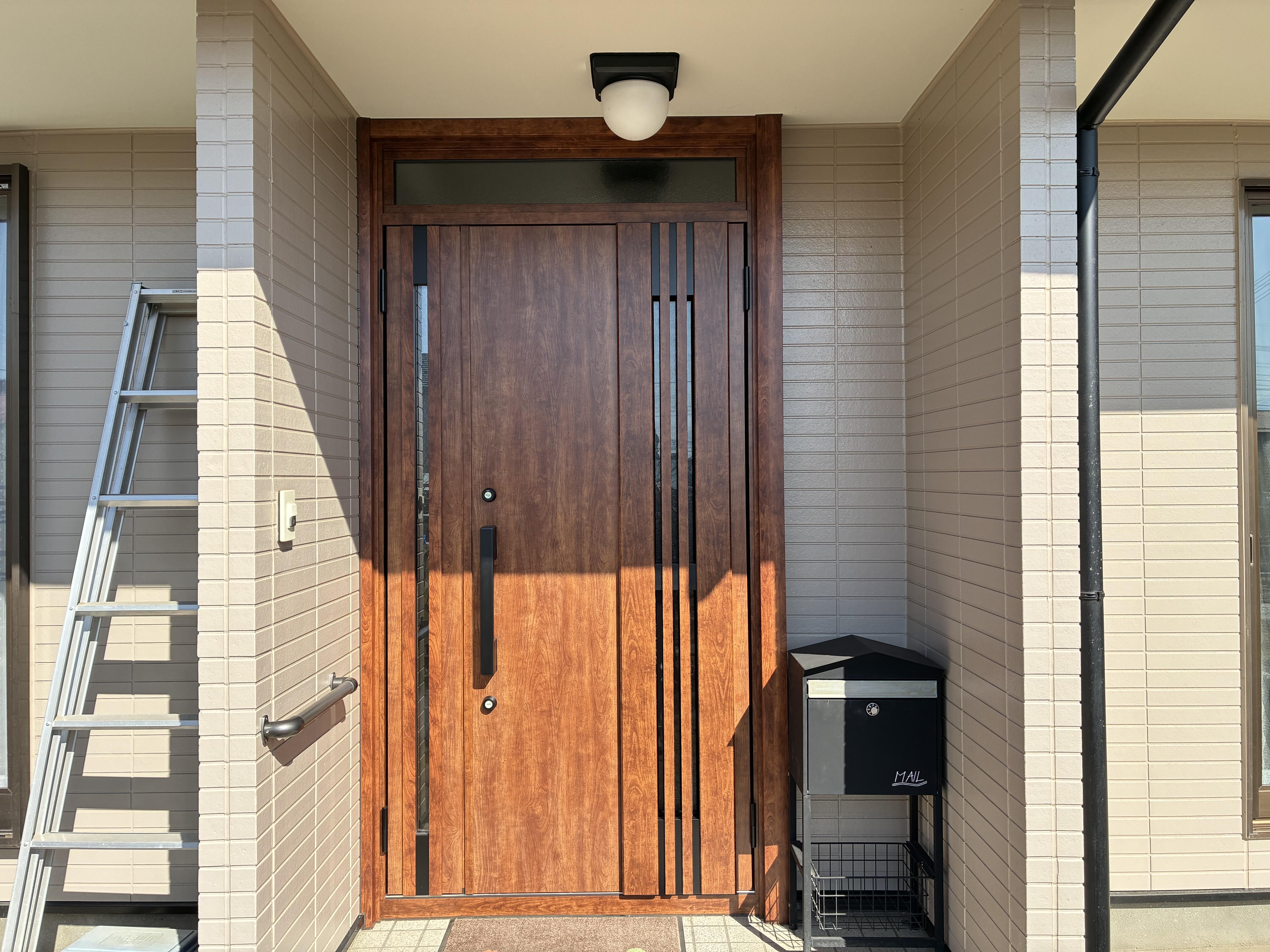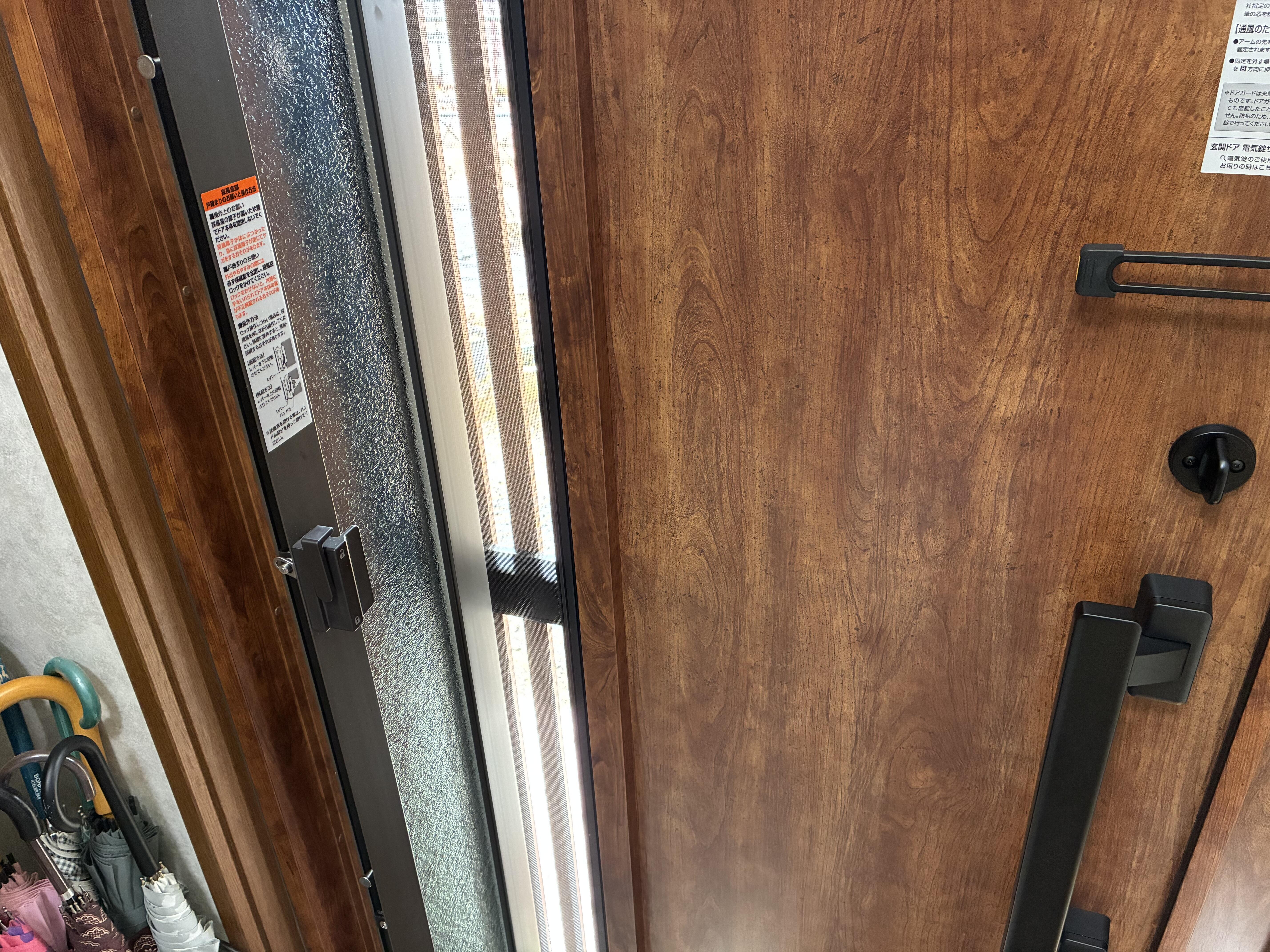 今回は玄関ドアだけでなくキッチンの換気扇も具合が悪くなったのと、将来的な不安から階段に手すりを付けたいと改めてご相談いただいたので、すべてまとめて施工することとなりました。写真にはありませんが和室の襖も張り替えています。