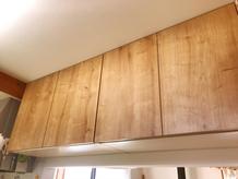木目の吊戸棚とアクセントクロスがベストマッチ!!