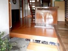 玄関ホール床重ね張りリフォーム。傷んだ床も改善、段差も解消した安全に暮らせる仕上がりになりました。(南アルプス市)