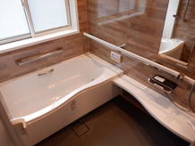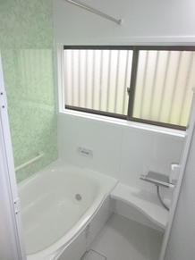 LIXILのユニットバス・アライズにリフォーム。爽やかな黄緑色の壁パネルで開放的な空間に。南アルプス市