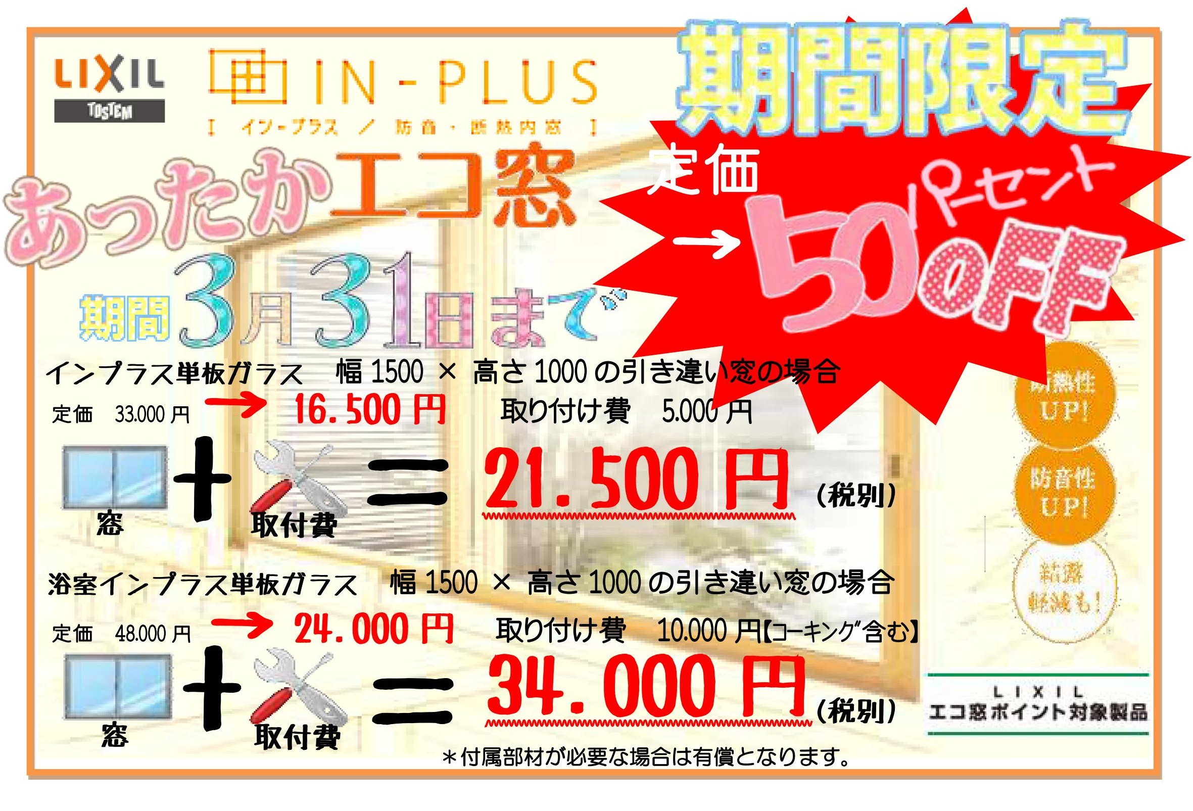 期間限定にて内窓商品LIXILインプラスを