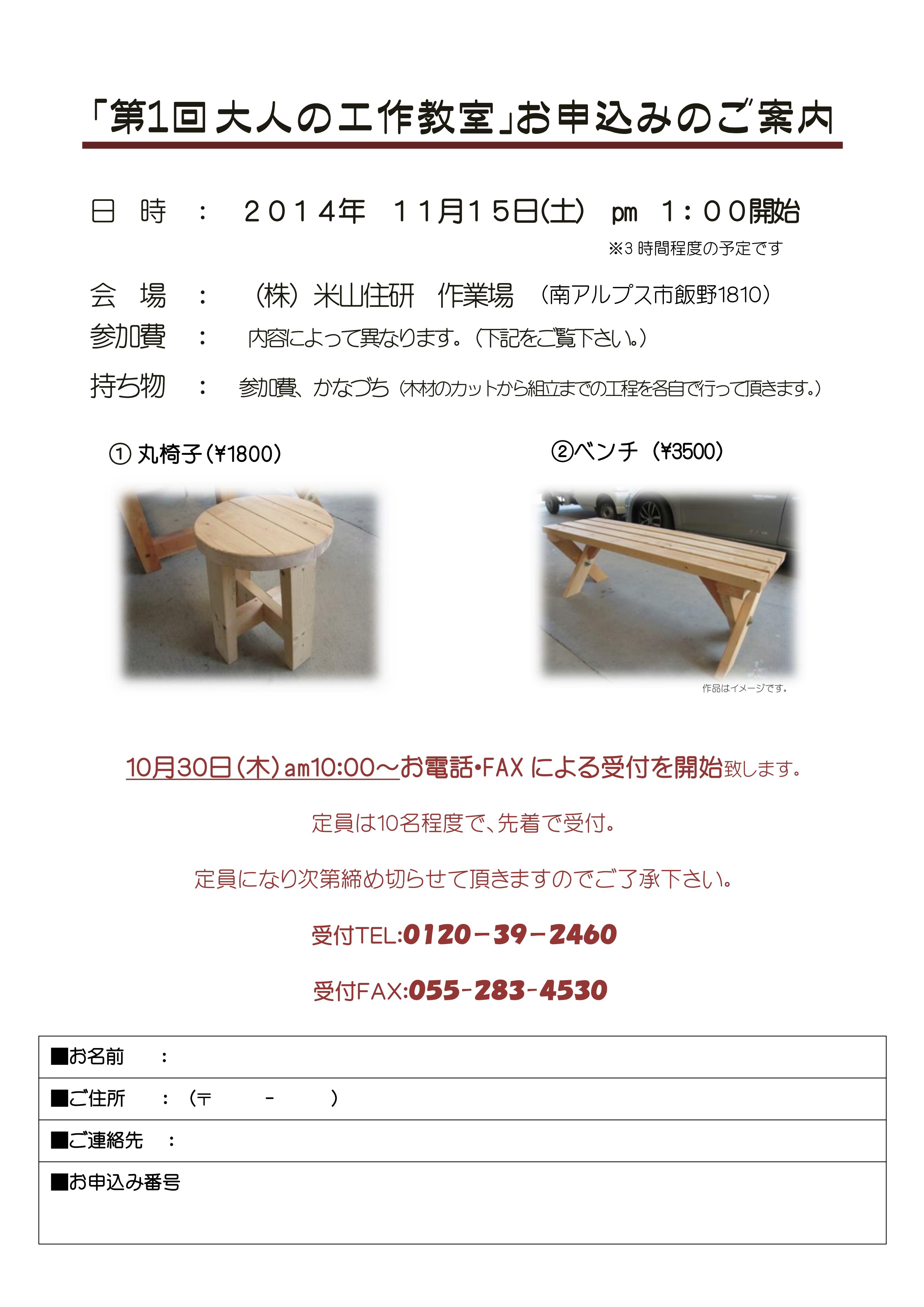 今回記念すべき第1回目!「大人の工作教室」の開催内容が決定しましたヽ(^。^)ノ