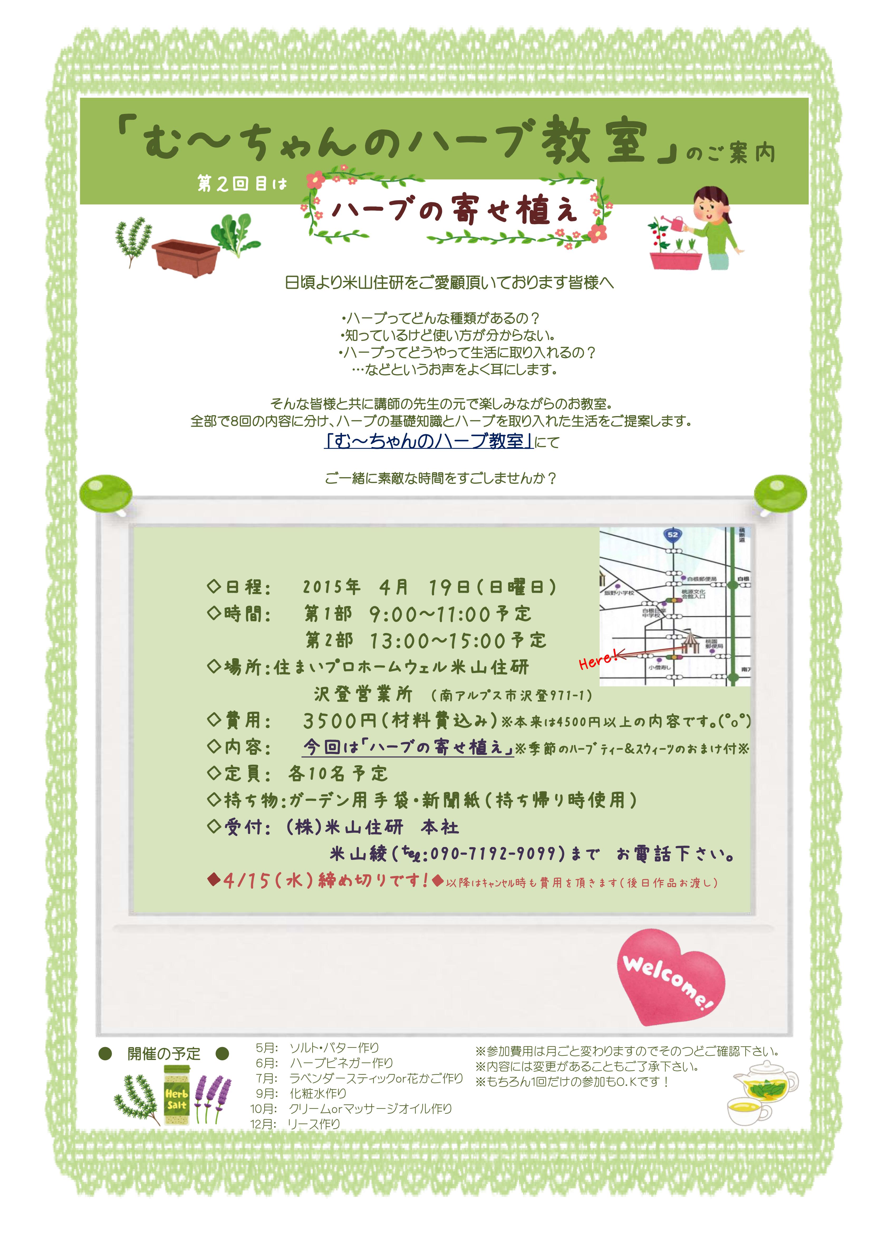 前回の「む~ちゃんのハーブ教室」はご好評のもと開催させていただきました。