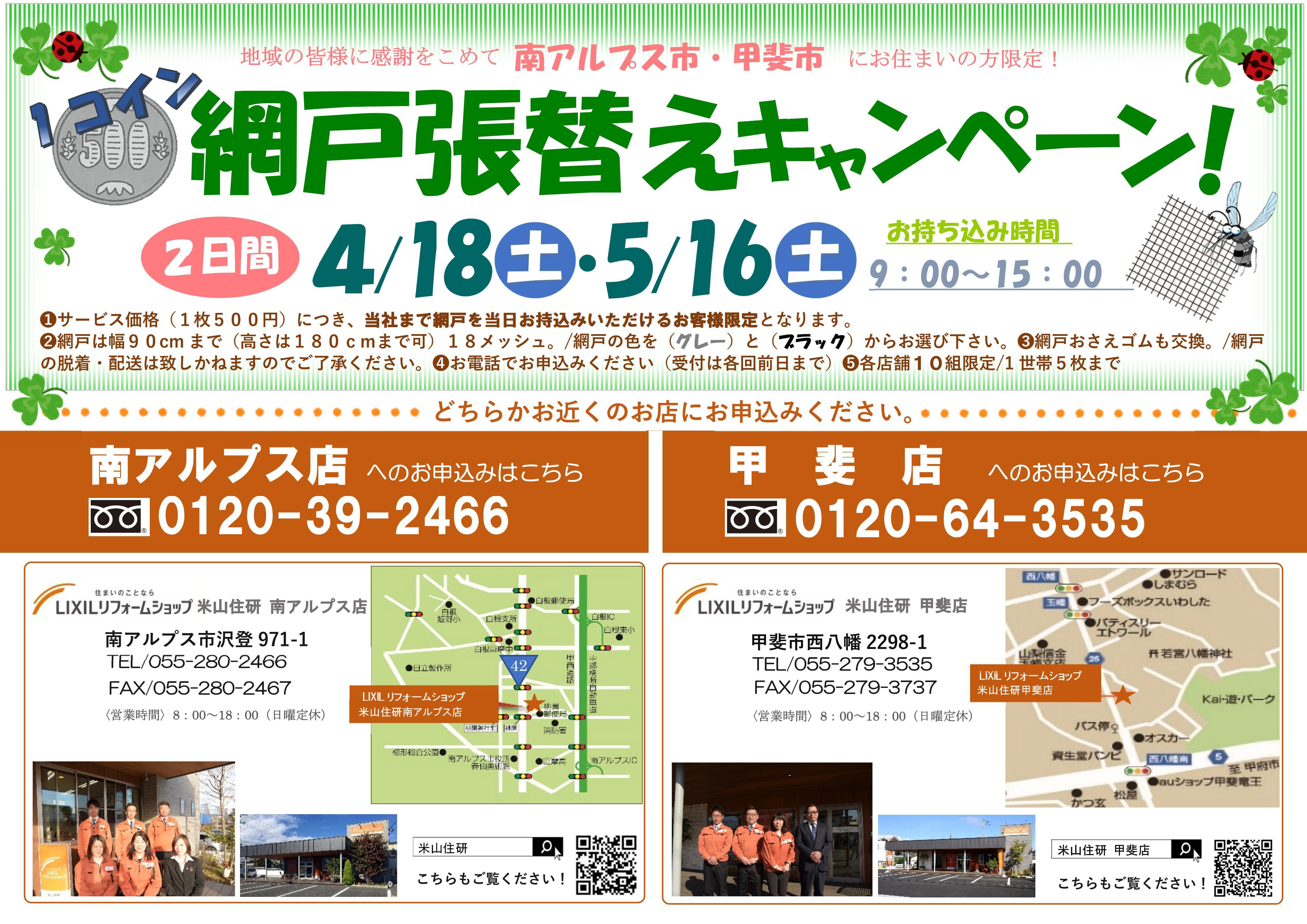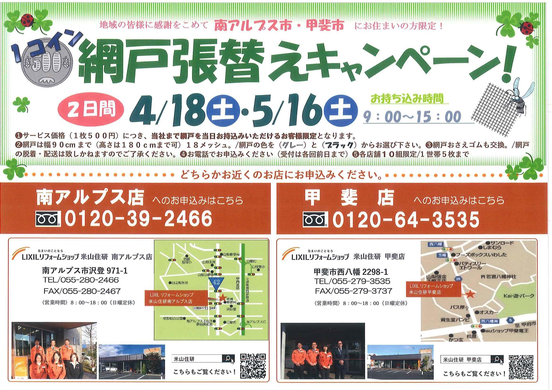 "1コイン" 網戸張替えキャンペーン開催