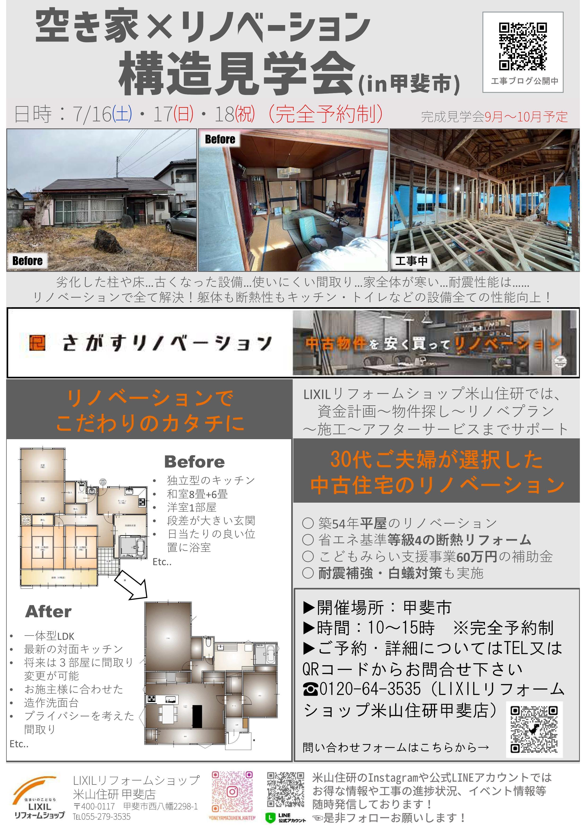 ただいま甲斐市のリフォーム中の完成後見学会のお知らせです。