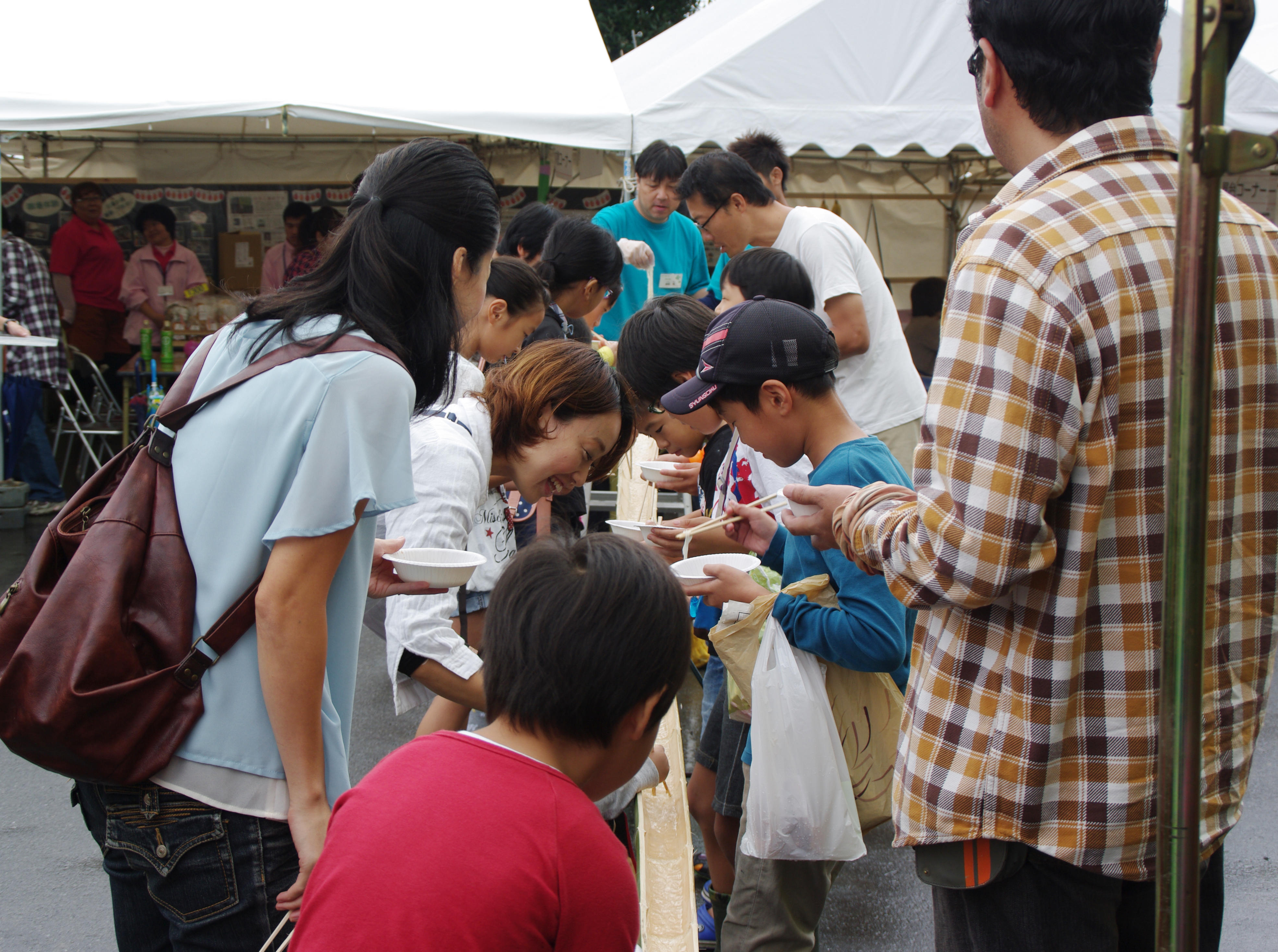 大工さんと競争!丸太切り大会流しそうめん木工体験コーナー屋台コーナー腐葉土・木工品・手作り品販売子ども上棟