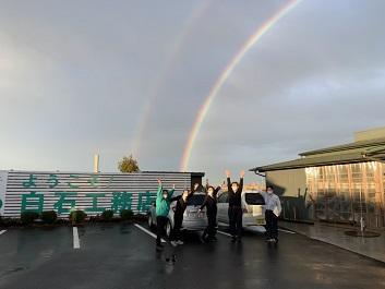 先日の月曜日、私が家に帰った後、会社のグループラインに送られてきた綺麗な二重の虹の写真。