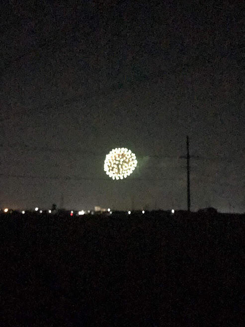 花火だ!!(^^)/ 写真では全然きれいに映っていませんが、20~30分の花火が見られました。