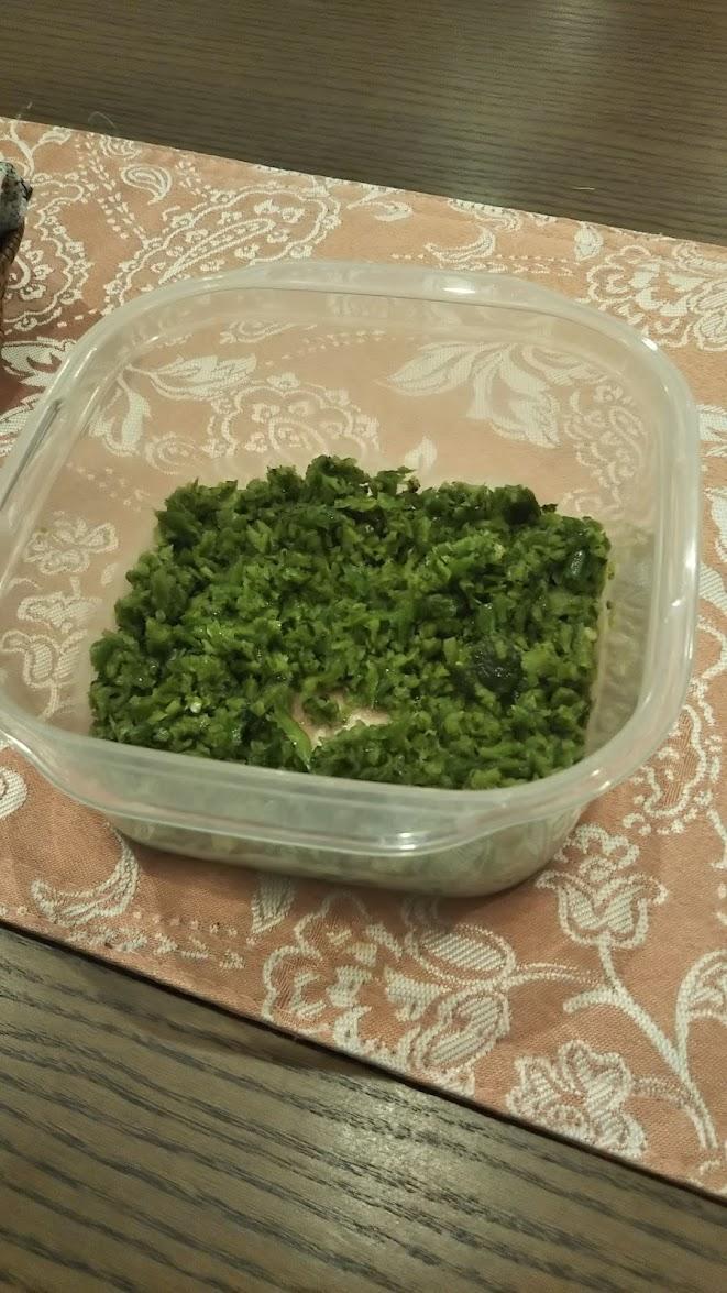 そのあと、ミキサーで細かくみじん切りに。そして青唐辛子は1つ1つ開いて種を取って、こちらもみじん切りに。
