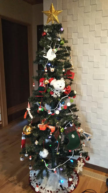 さて、先日お伺いしたF様のお宅。お邪魔したとたん、玄関の目の前に、こんなに大きくて立派なクリスマスツリーが!!