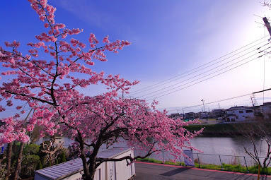 我が家のすぐ近くの神社には早咲きの桜が満開になっていました。