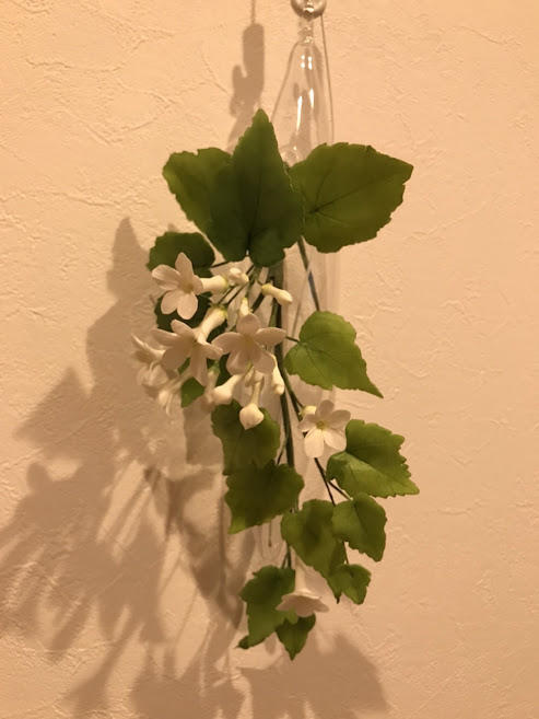 季節に合わせて我が家の玄関飾りのお花を入れ替えてくれています。今回は夏らしいジャスミン。