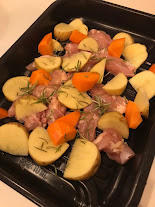 おいしいうちに頂こうと、まずは鶏肉とじゃがいもをオーブンで焼いてみました。