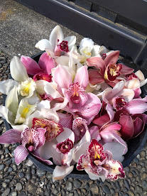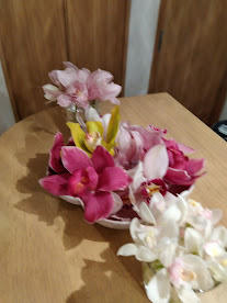シンビジウムだそうです。たくさん分けていただいたので、家でも飾ってみました。