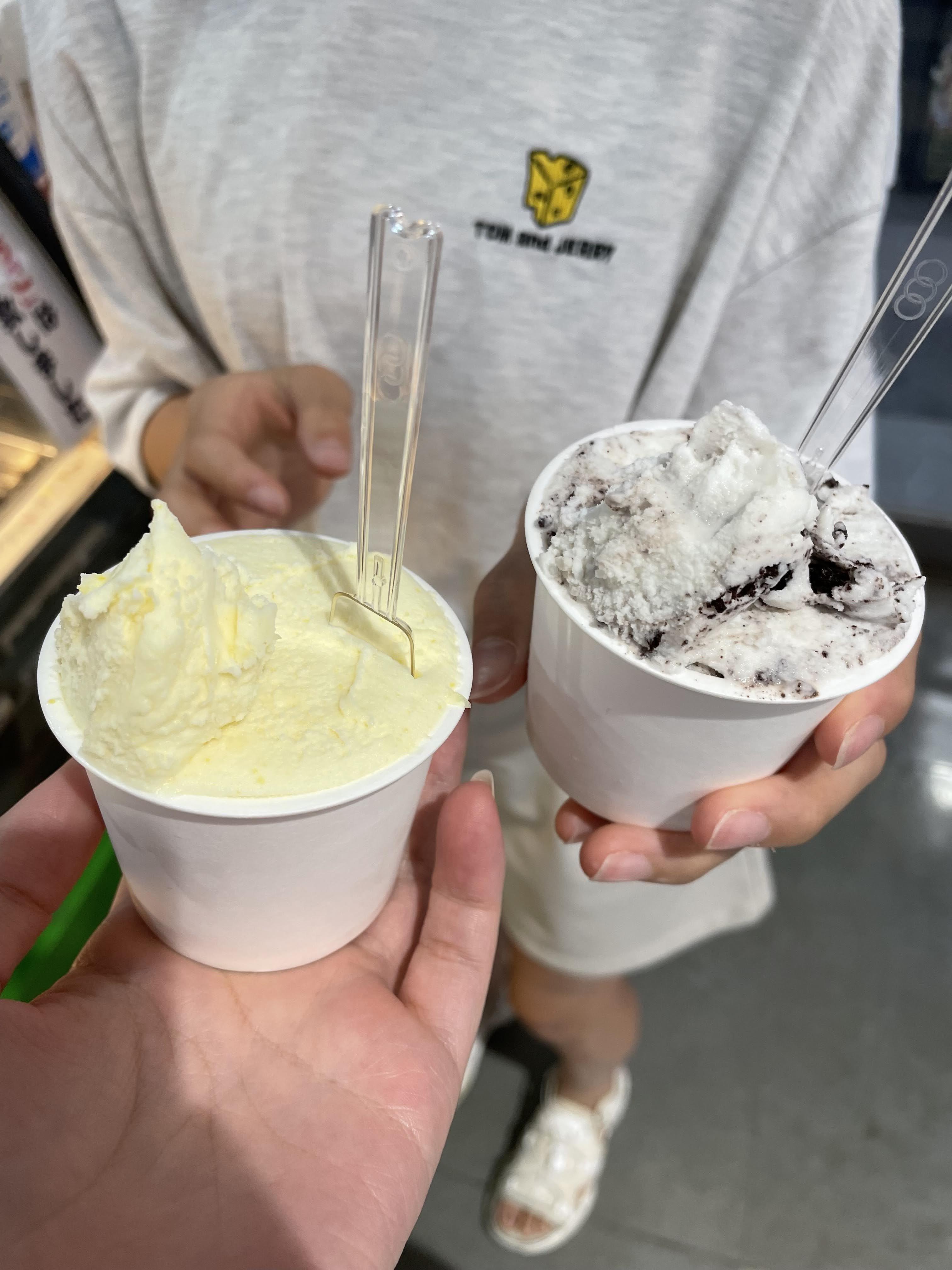 左がとうもろこし、右がクッキー&クリーム(娘・息子はいつもこれです)。