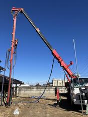 150本近くの杭を地中に埋め込んでいきます。こんなにも長い杭を次々と手際よく、1本あたり数秒で入れてい