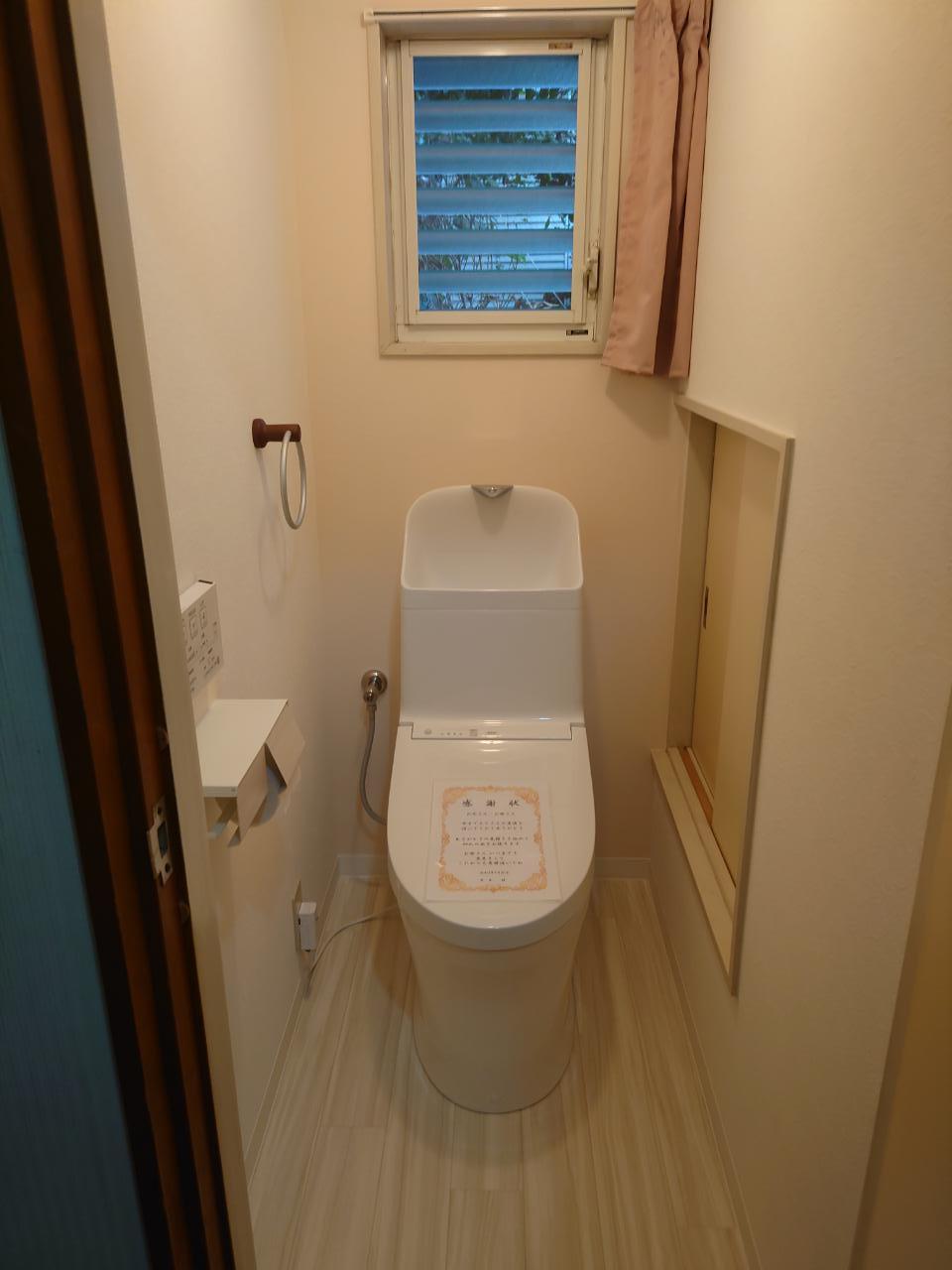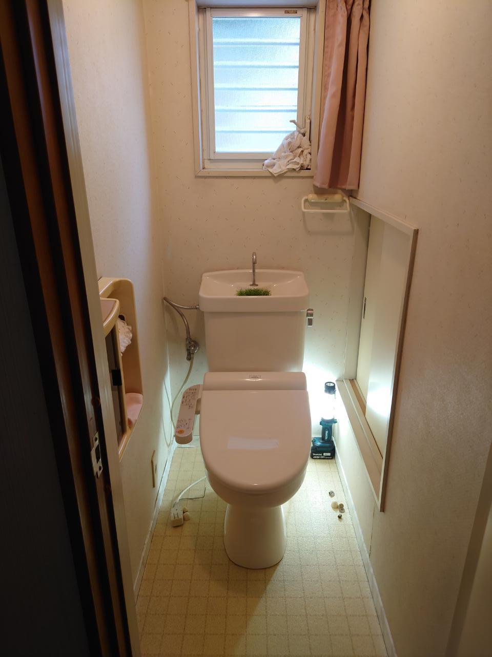 結婚が決まり、実家を離れる前に、ご両親へ感謝の気持ちを込めて、トイレのリフォームをプレゼントしたいという、弊社スタッフのご友人からのご依頼でした。ご両親には工事をすることを内緒にされていたので、打ち合わせ~工事当日まで、極秘で計画を進めました。