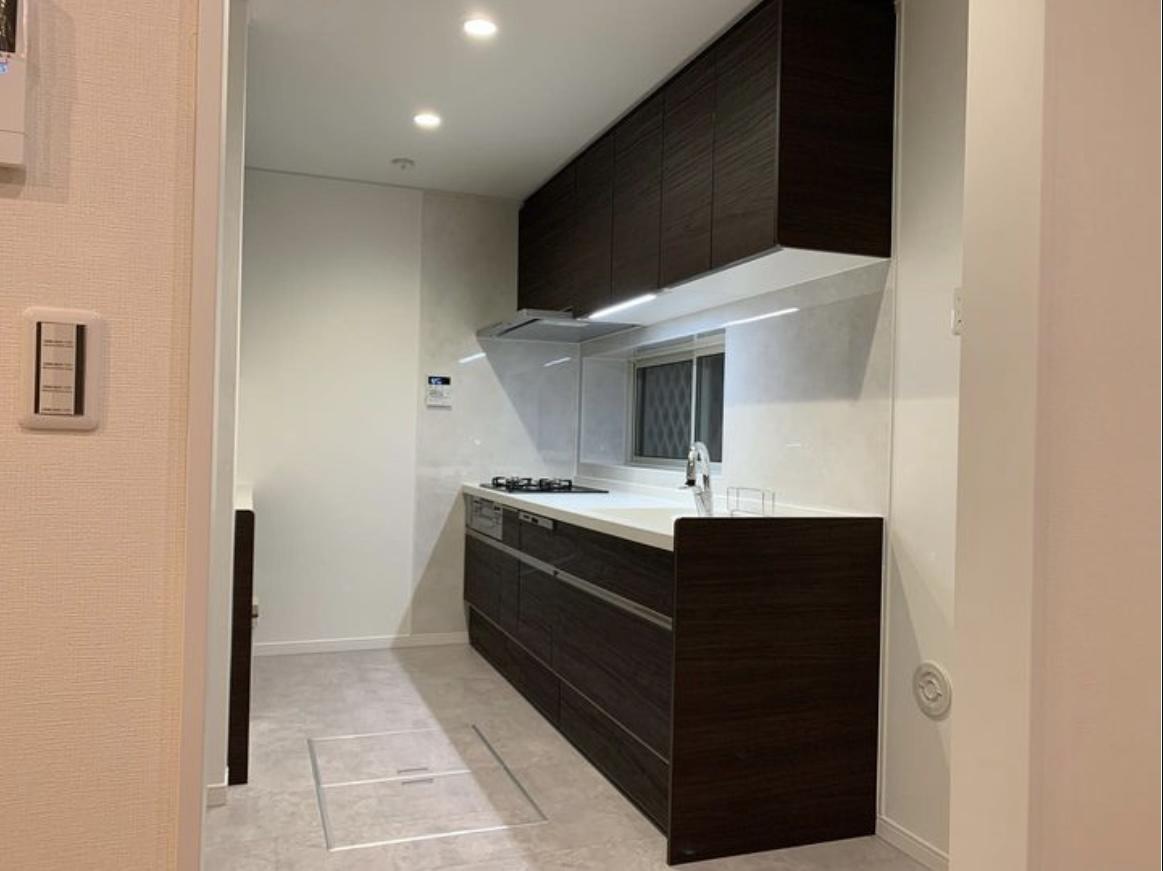 ホテルライクをご希望のK様。シンプルでシックな色合いなキッチンをお選びになりました。 室内建具と色合いを合わせたことで統一感が生まれ、大人なインテリアに仕上がりました。