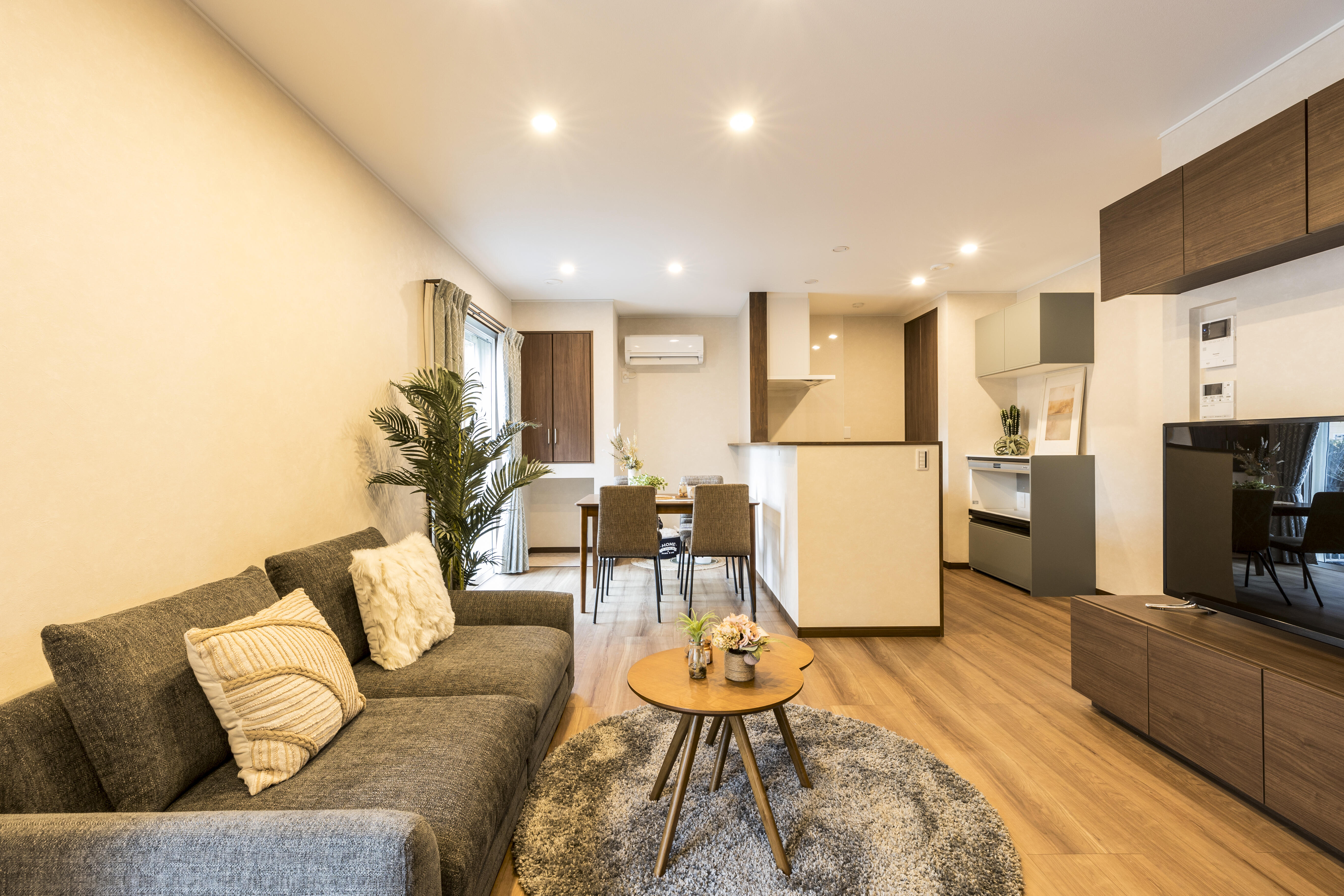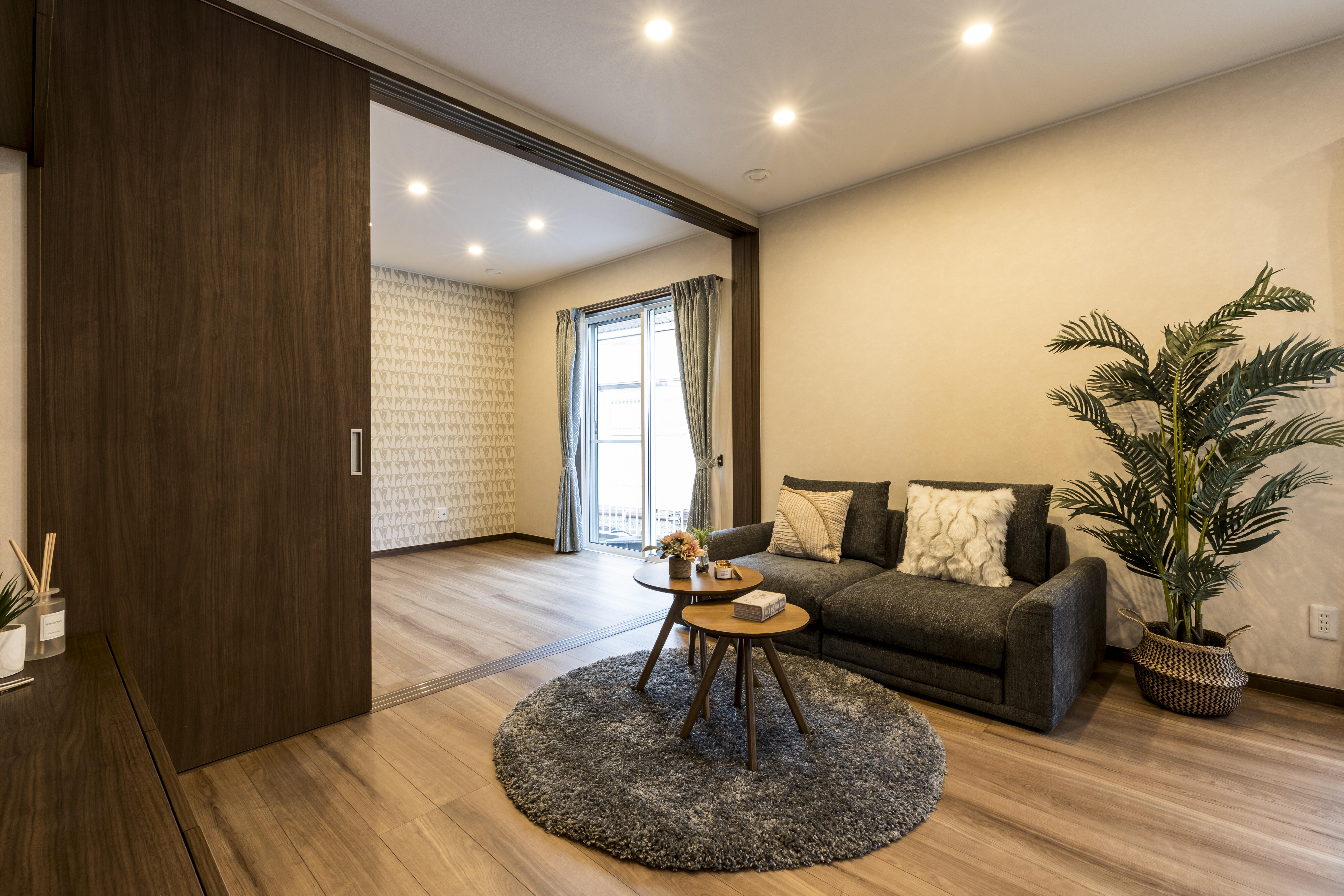 温度差の少ない住まいのご提案、そして部屋を広く使いつつも、将来的なお母様の介護の為、またご自身もいずれ2階に上がることが難しくなる可能性を考え、プライベート空間を確保できる仕切りを設けました。