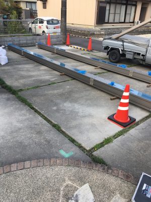 打合せ段階で、カーポートの屋根位置を養生テープで印を付けます。