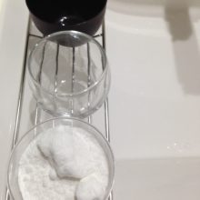 乾燥材としての役目を終えた重曹は、今度は頑固な汚れのお掃除に使いまわします。