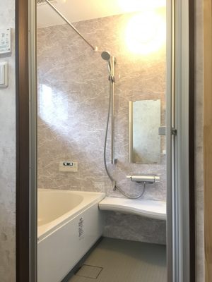 完成に向けて工事中の米原市の浴室工事はユニットバスの取り付けが完成しました。