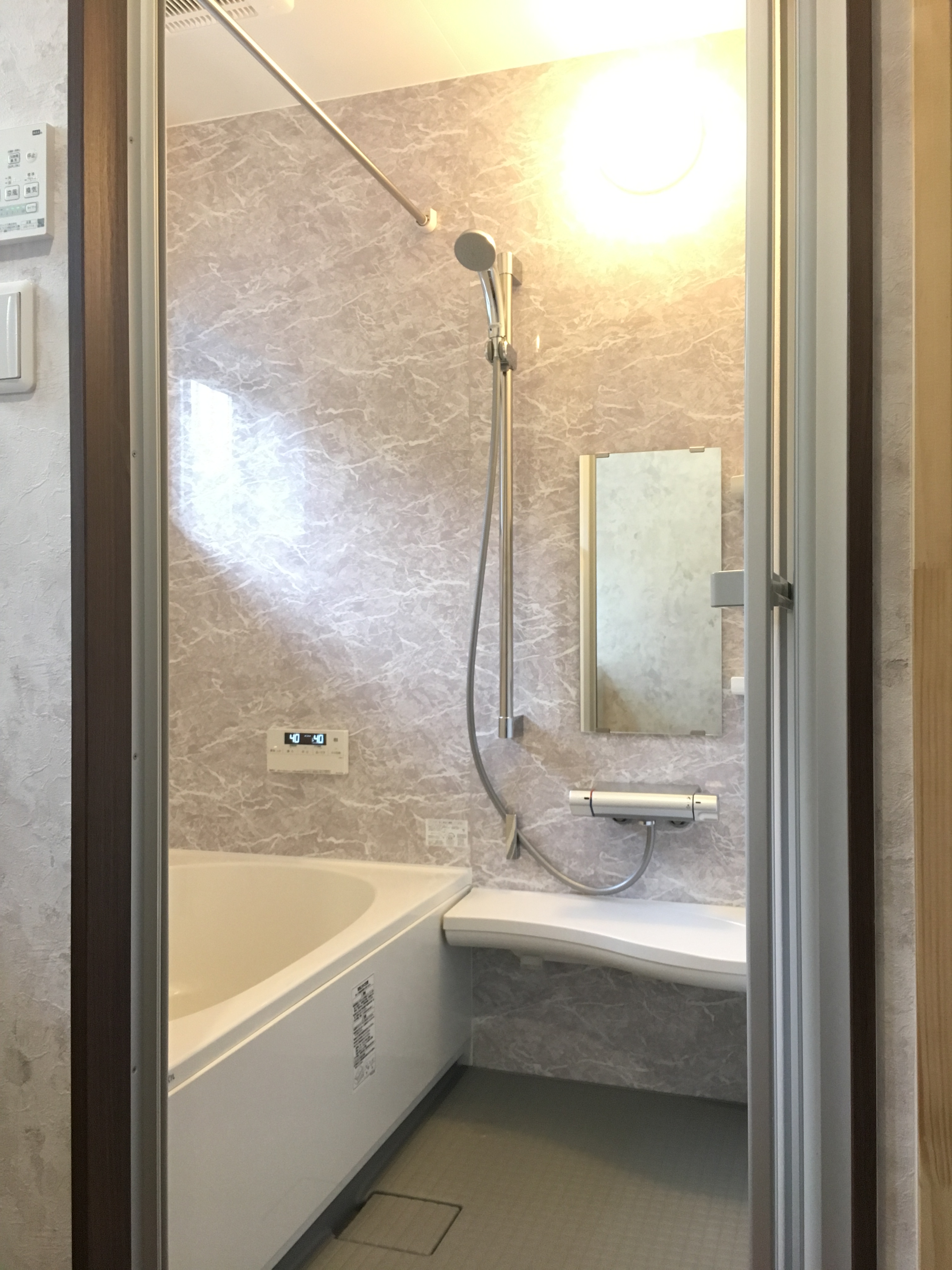 脱衣所の洗面台や入り口の扉も新しくしましたが、工事完成後にまとめてレポートします。