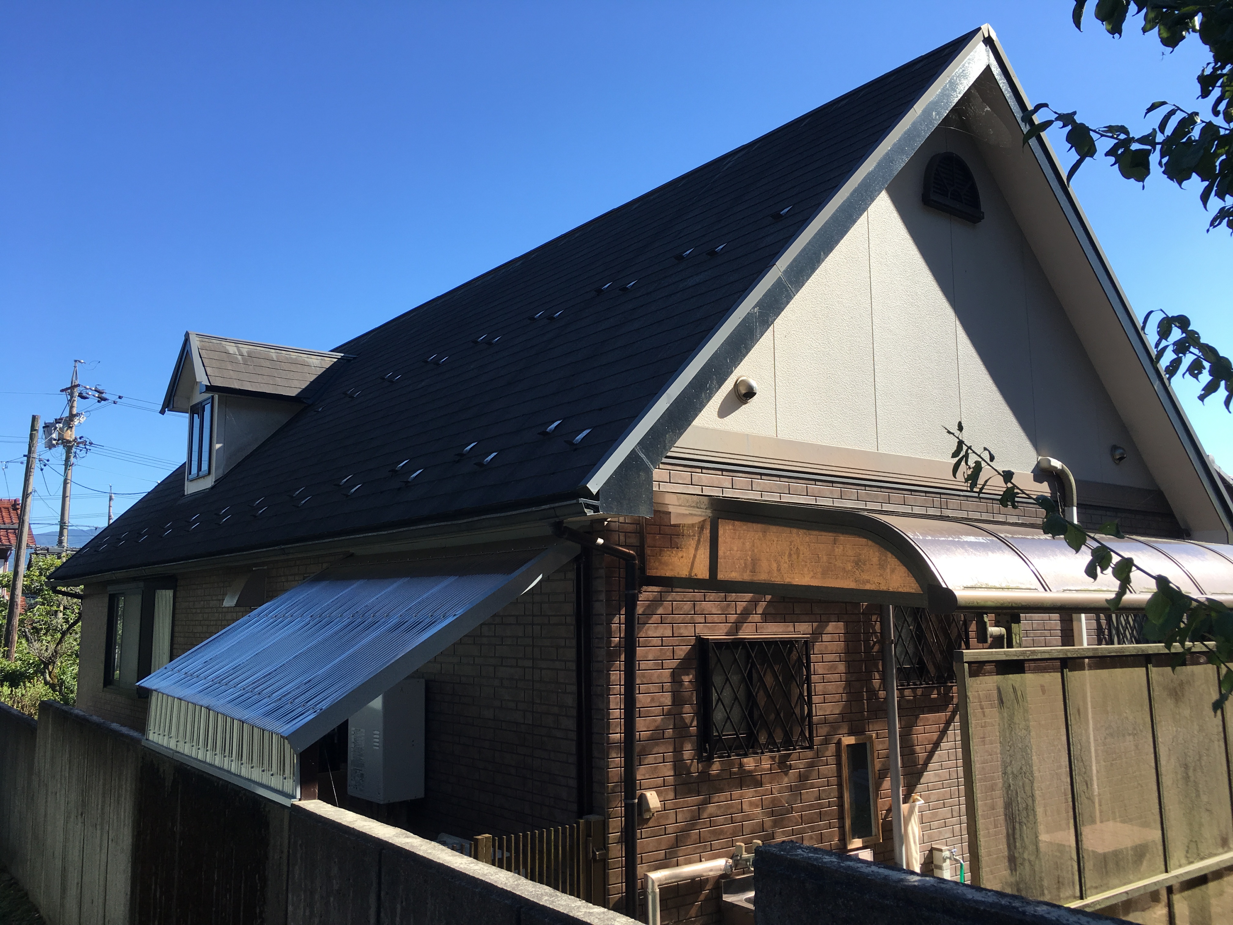 屋根は黒、外壁は茶系の色を採用いただき、以前より落ち着いた雰囲気になりました。