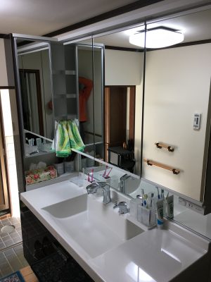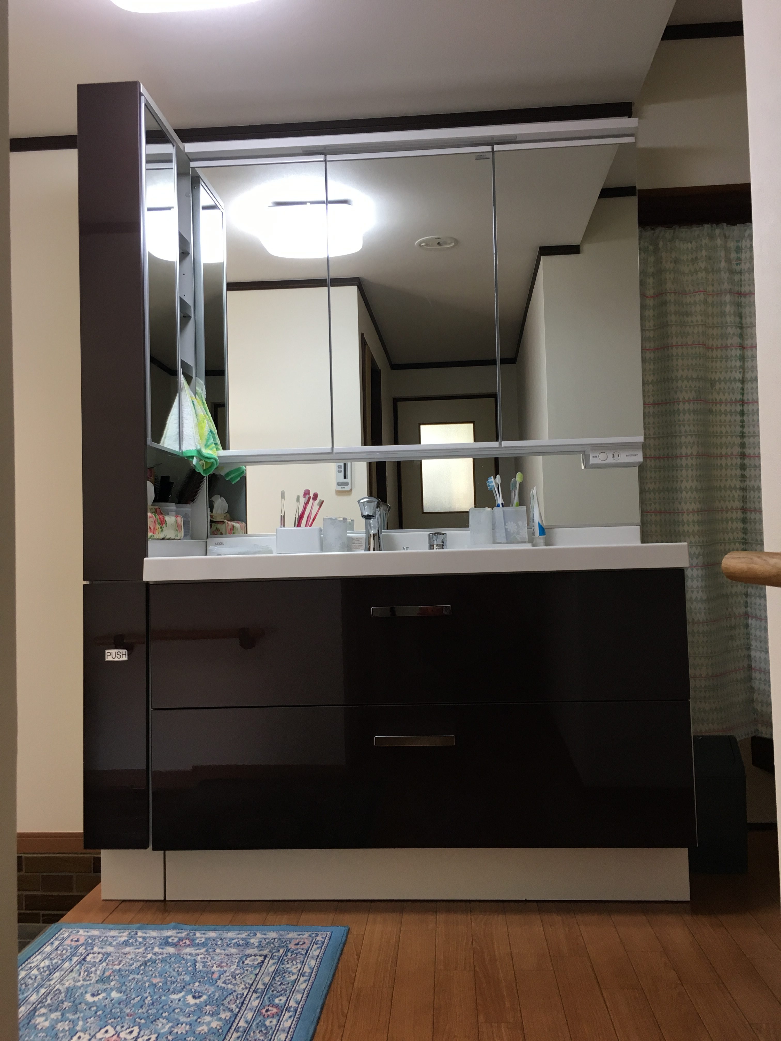 側面には収納がついていて、3面鏡の中にも収納できるため物が外に出なくてすっきりします。
